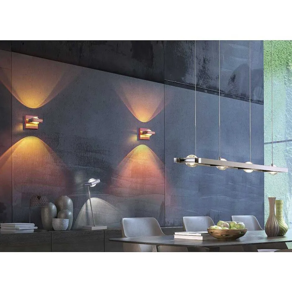 Suspension Paul-Neuhaus Q-Etienne Led Acier Brosse, 4 Lumieres, Telecommandes