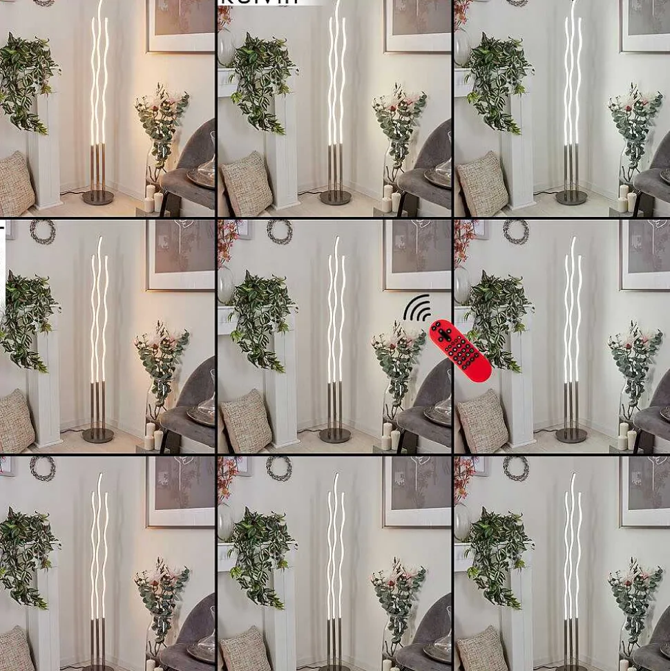 Lampadaire Gamsen Led Nickel Mat, 3 Lumieres, Telecommandes, Changeur De Couleurs