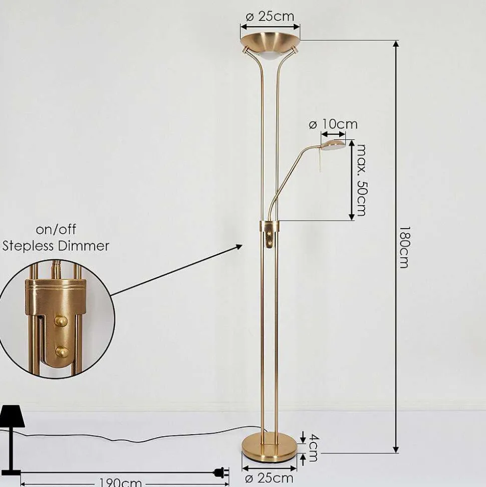 Lampadaire Rom Led Vieux Laiton, 2 Lumieres