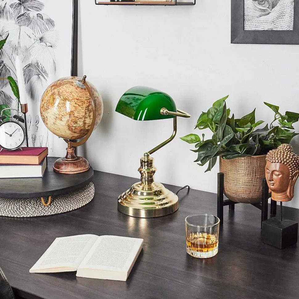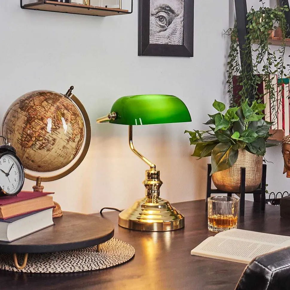 Lampe De Banquier Verte Or, Vert, Laiton, 1 Lumiere