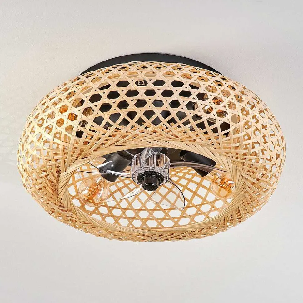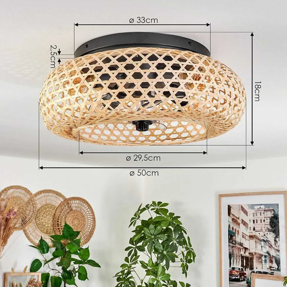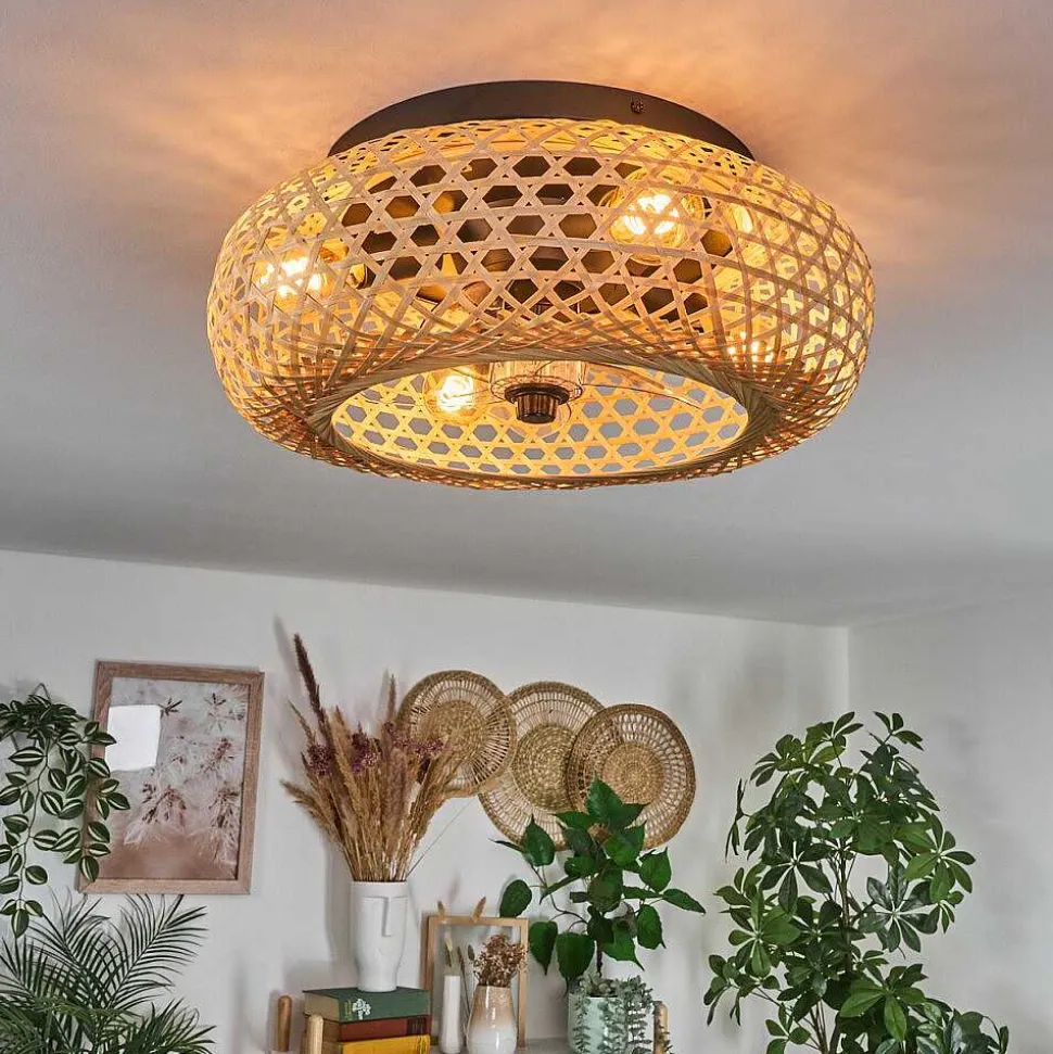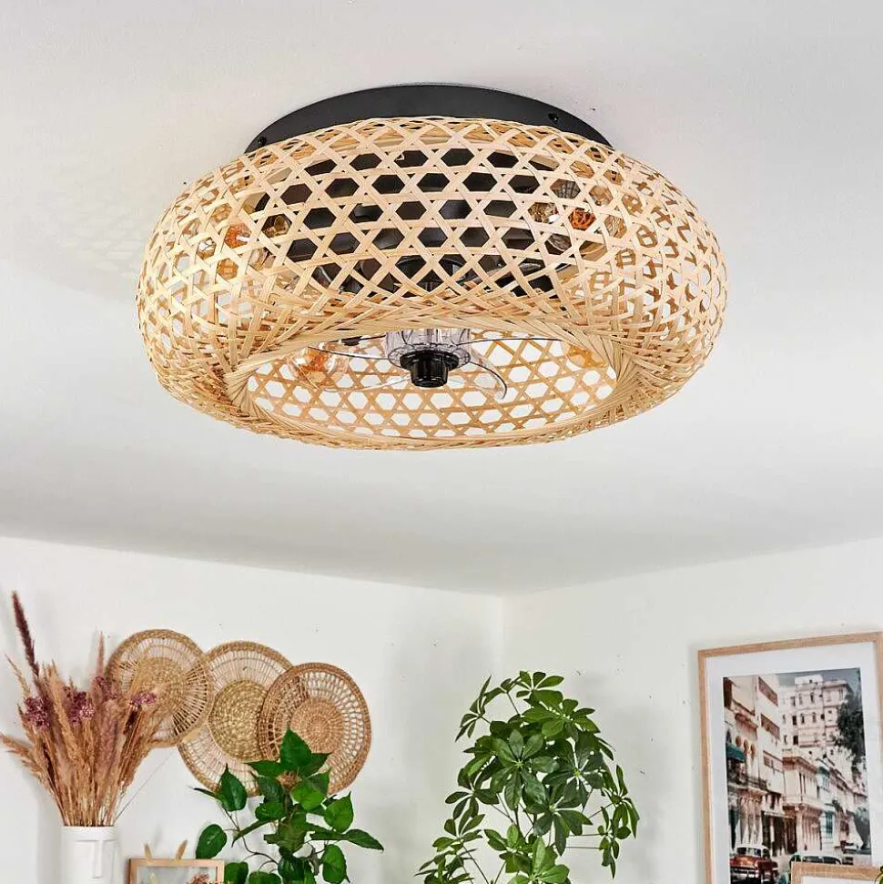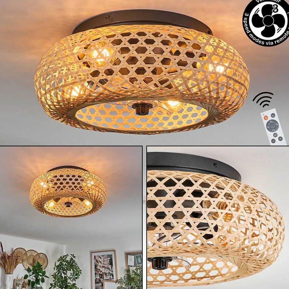 Plafonnier Salmi Led Brun, Couleur Bois, Noir, 1 Lumiere, Telecommandes