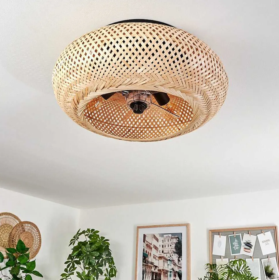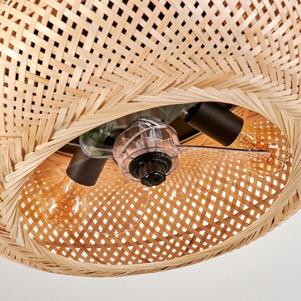 Plafonnier Salmi Led Brun, Couleur Bois, Noir, 1 Lumiere, Telecommandes
