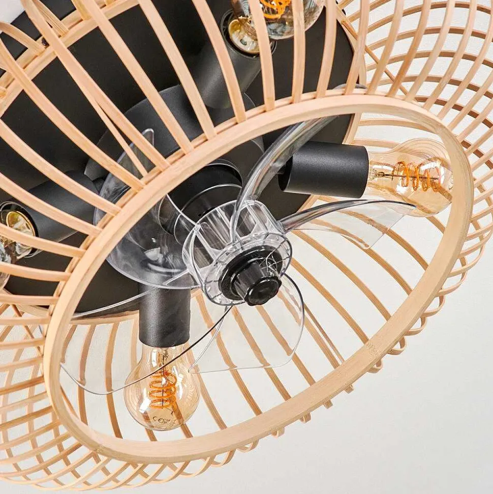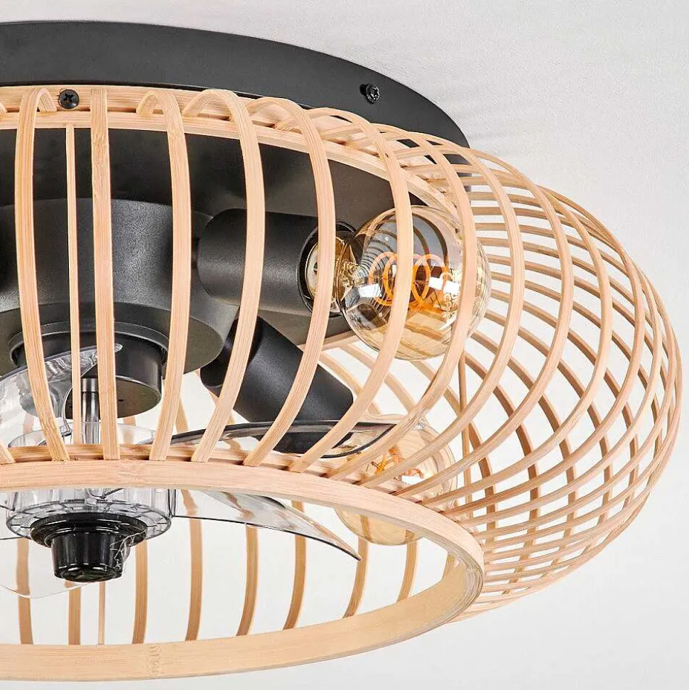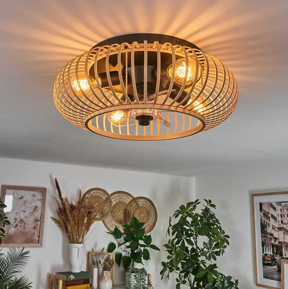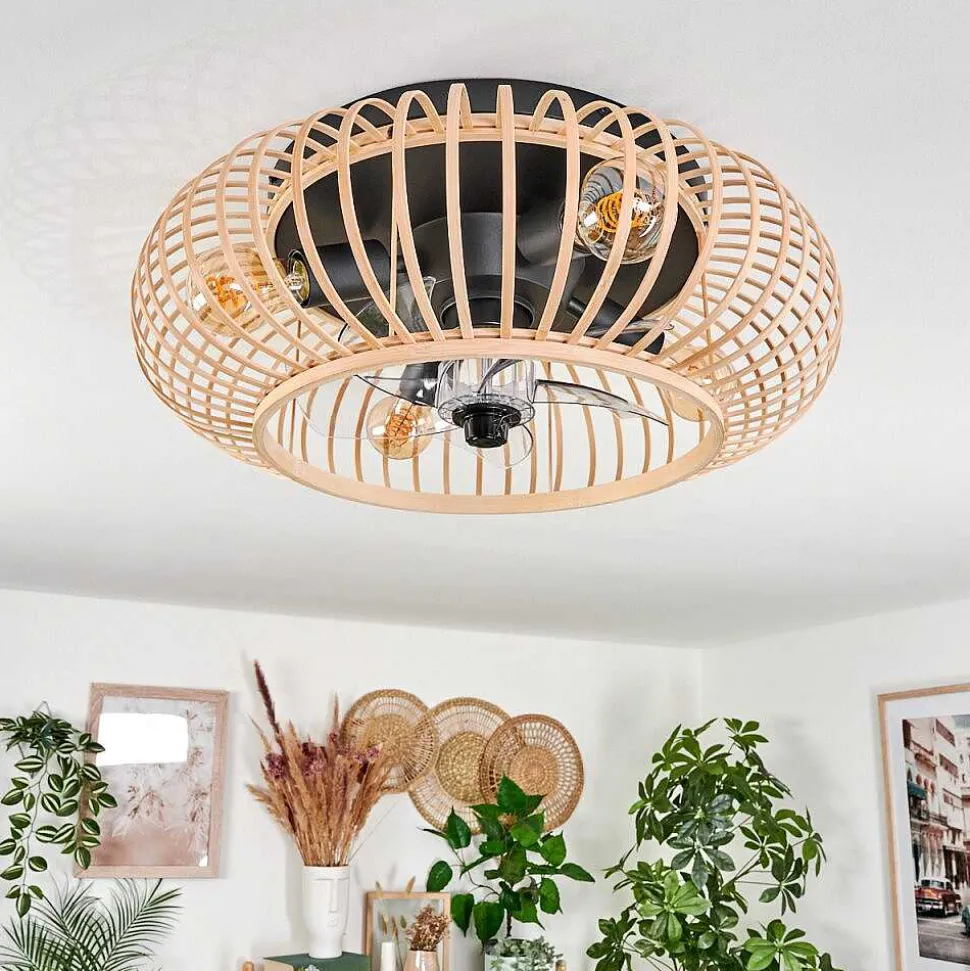 Plafonnier Salmi Led Brun, Couleur Bois, Noir, 1 Lumiere, Telecommandes