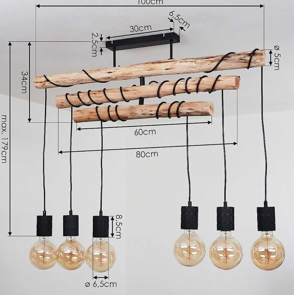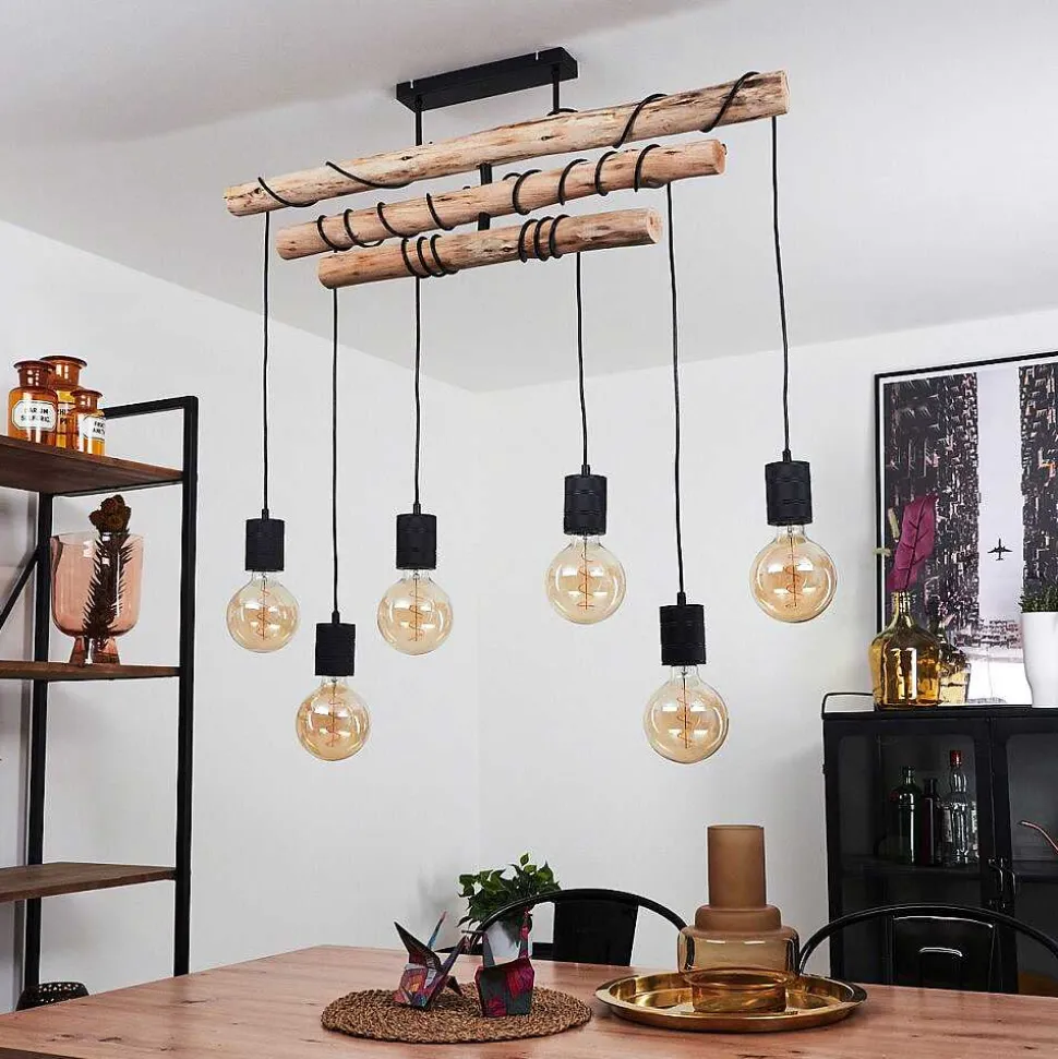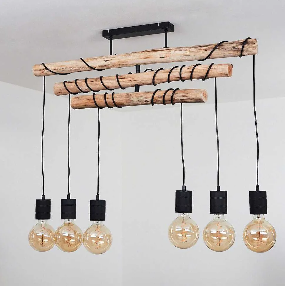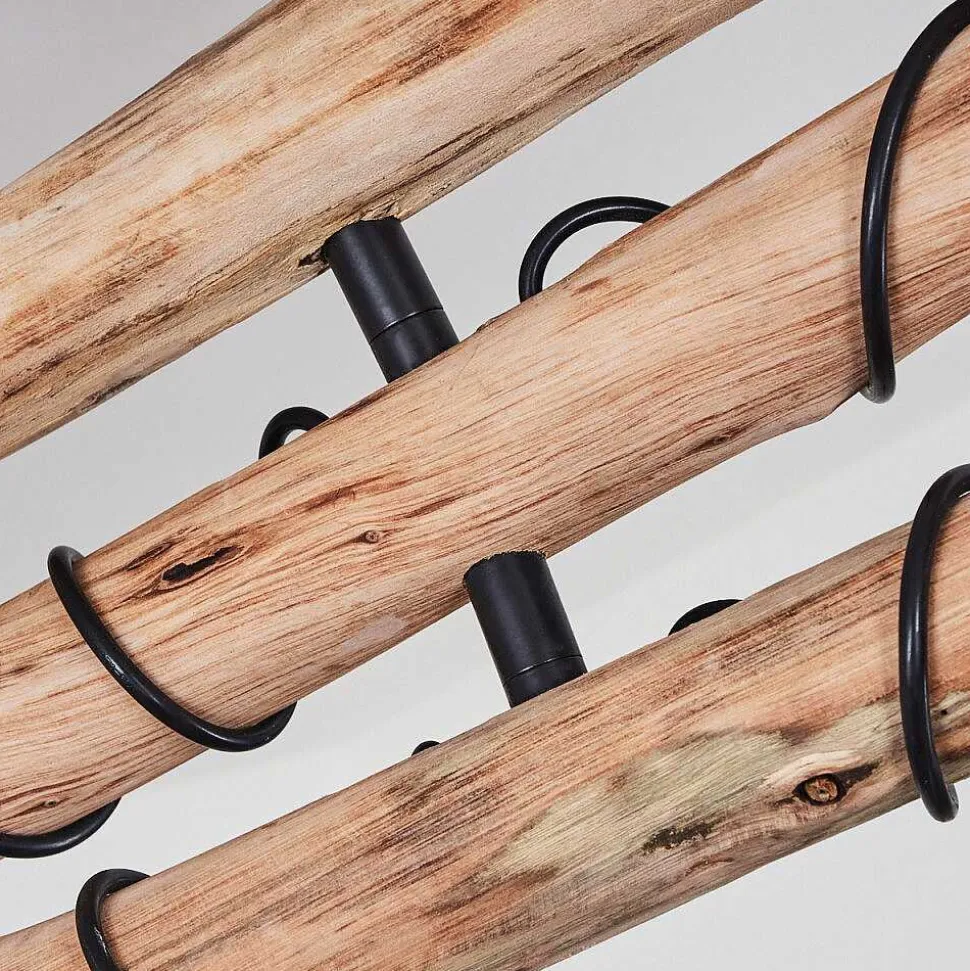 Plafonnier Ajaccio Bois Clair, Noir, 6 Lumieres
