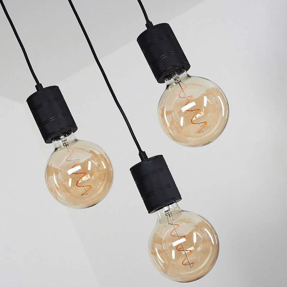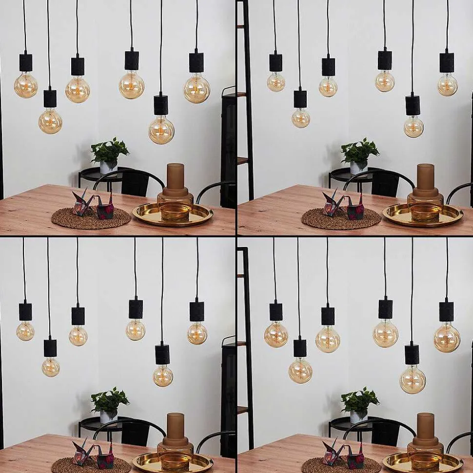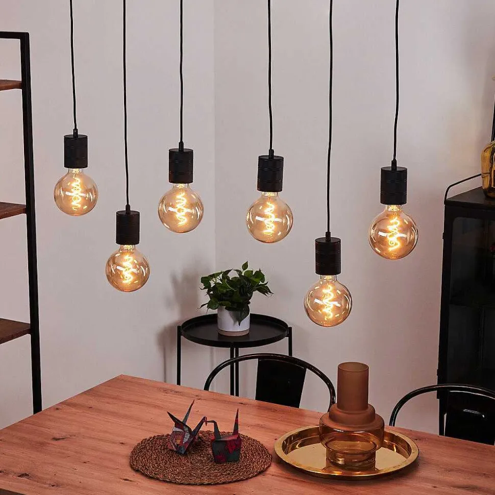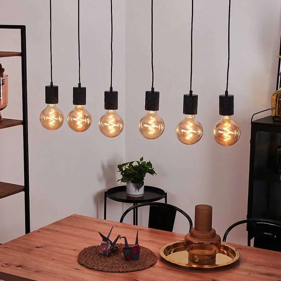 Plafonnier Ajaccio Bois Clair, Noir, 6 Lumieres