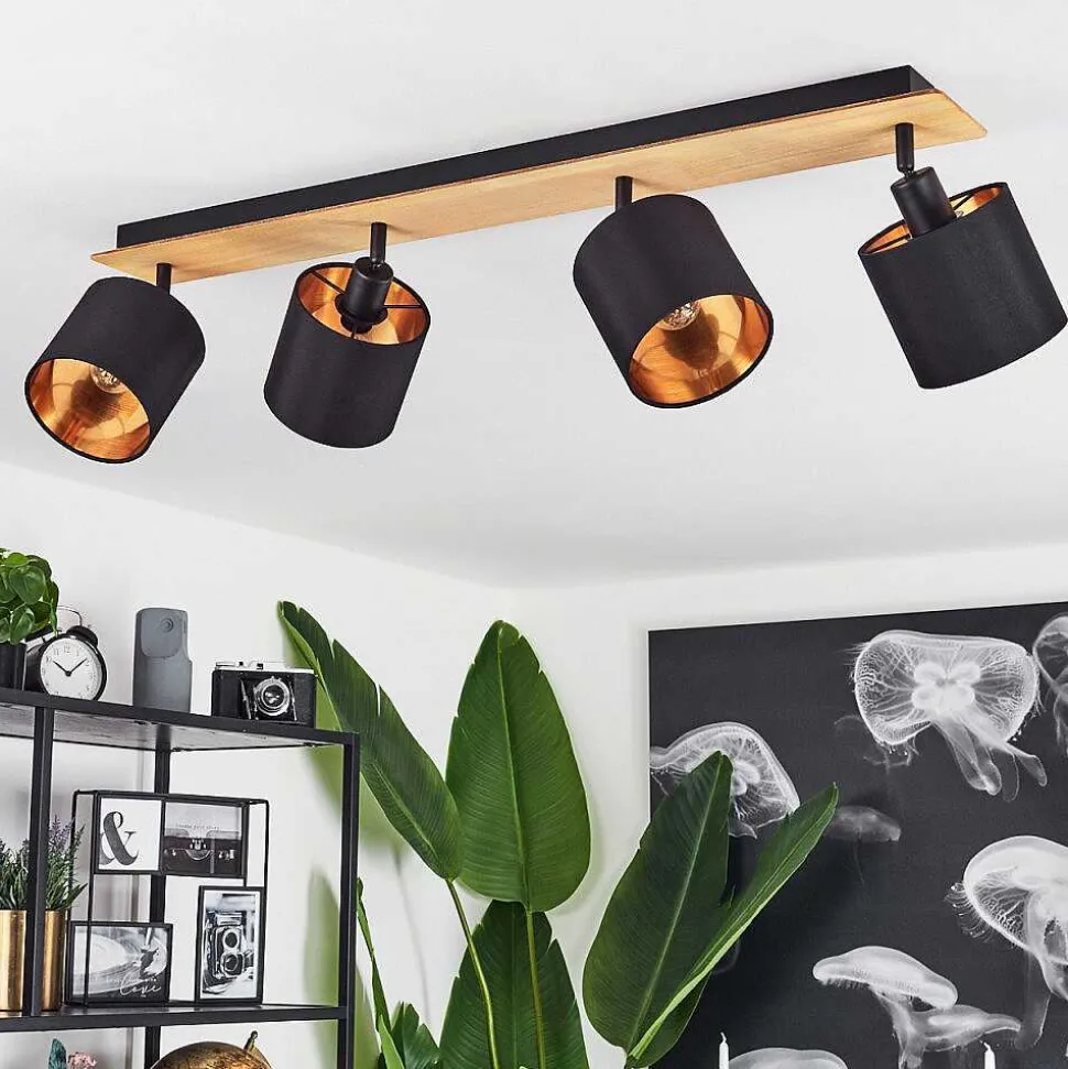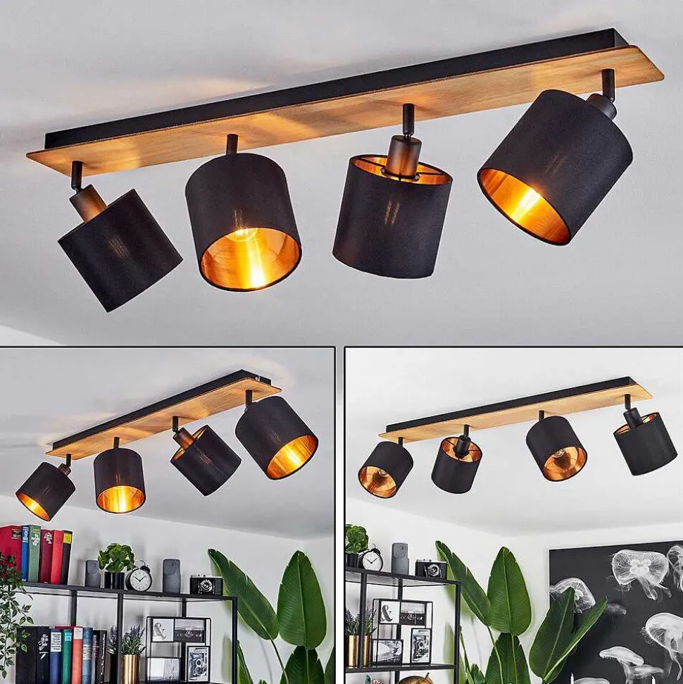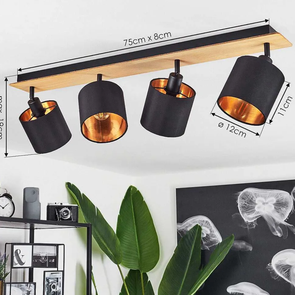 Plafonnier Salmi Led Brun, Couleur Bois, Noir, 1 Lumiere, Telecommandes