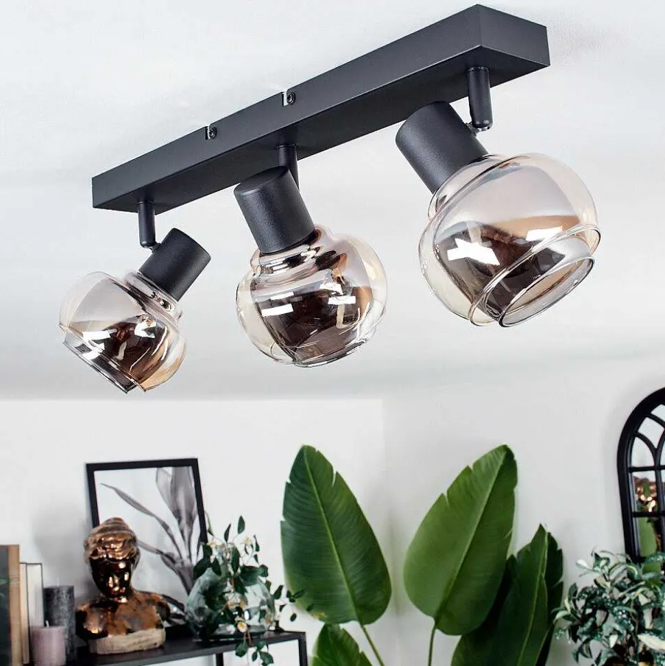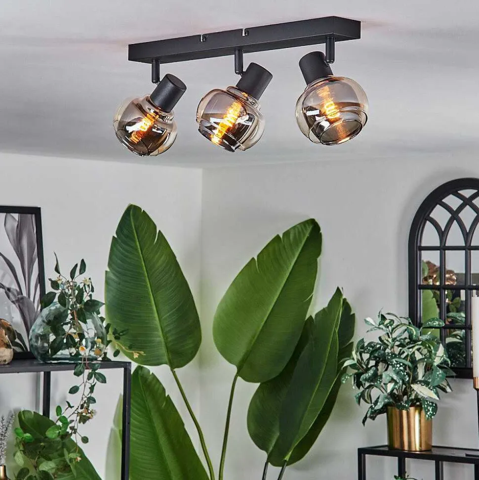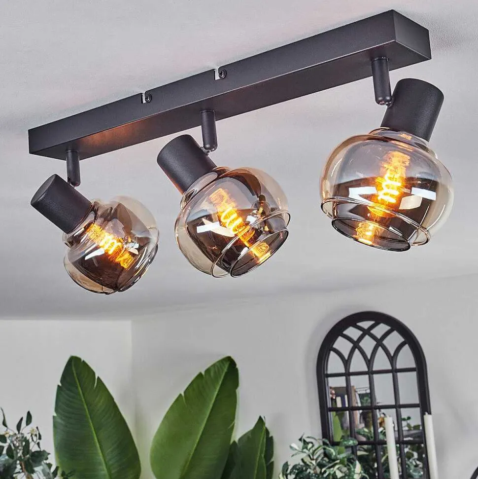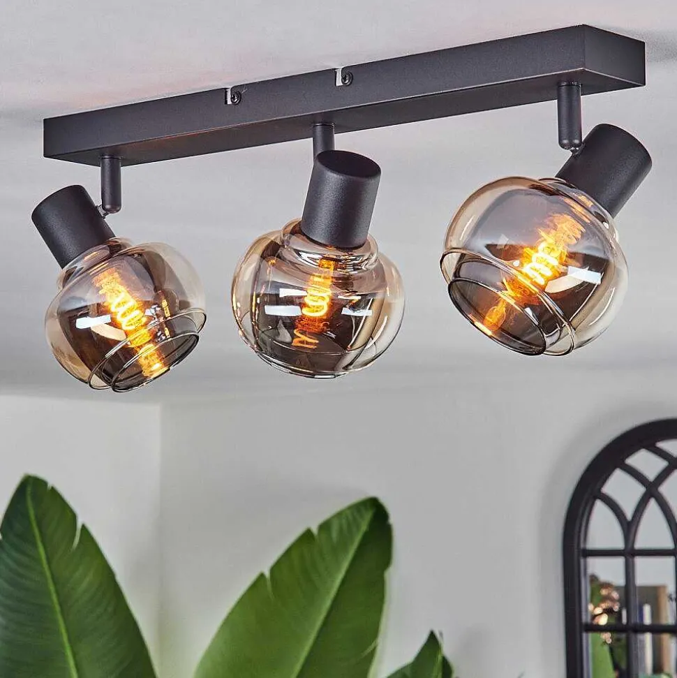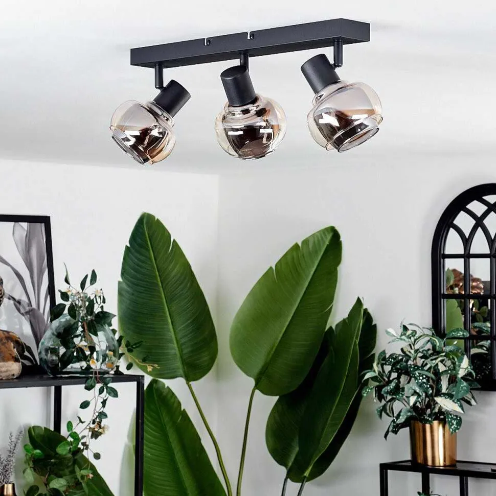 Plafonnier Salmi Led Brun, Couleur Bois, Noir, 1 Lumiere, Telecommandes