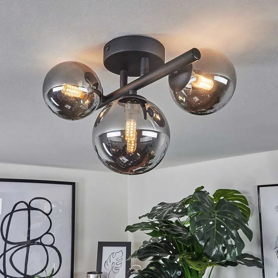 Plafonnier Salmi Led Brun, Couleur Bois, Noir, 1 Lumiere, Telecommandes
