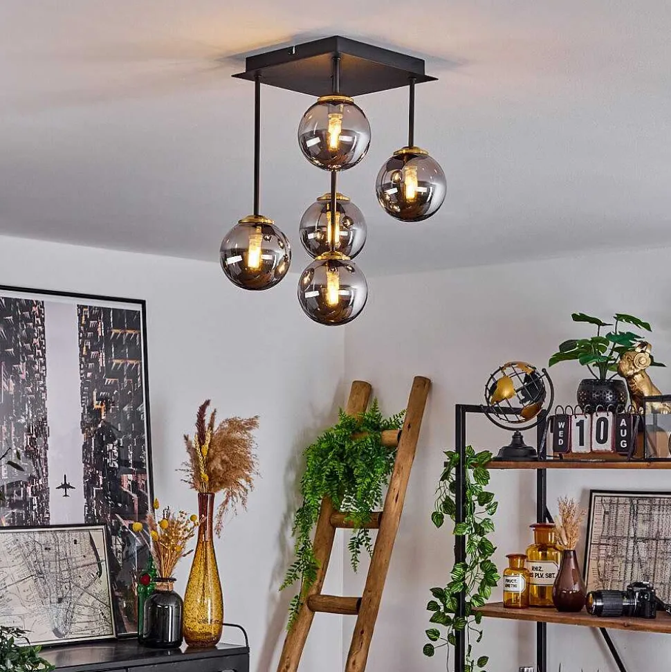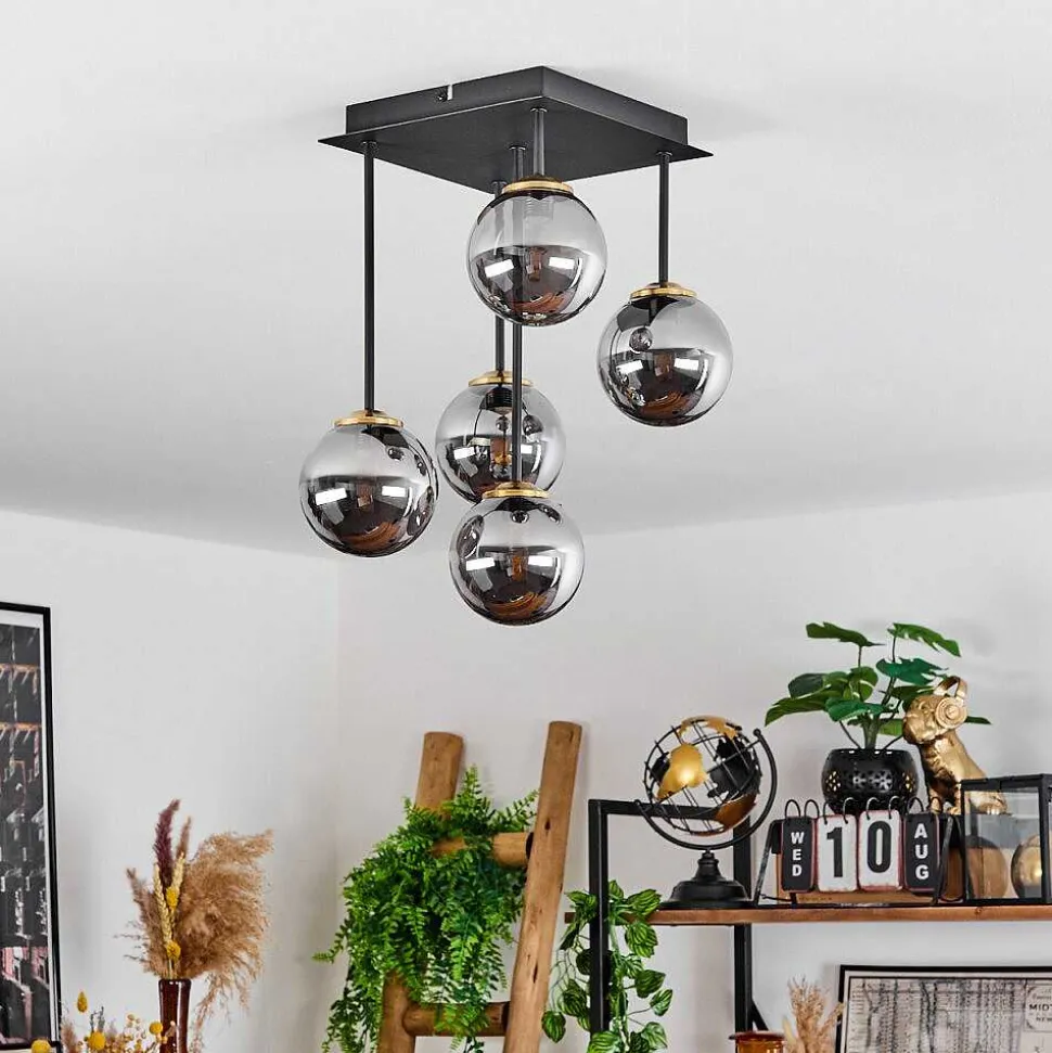 Plafonnier Salmi Led Couleur Bois, Noir, Blanc, 1 Lumiere, Telecommandes