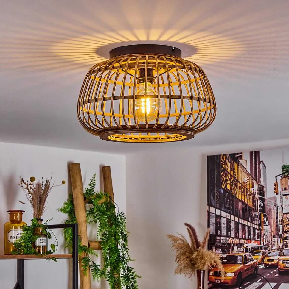 Plafonnier Salmi Led Brun, Couleur Bois, Noir, 1 Lumiere, Telecommandes