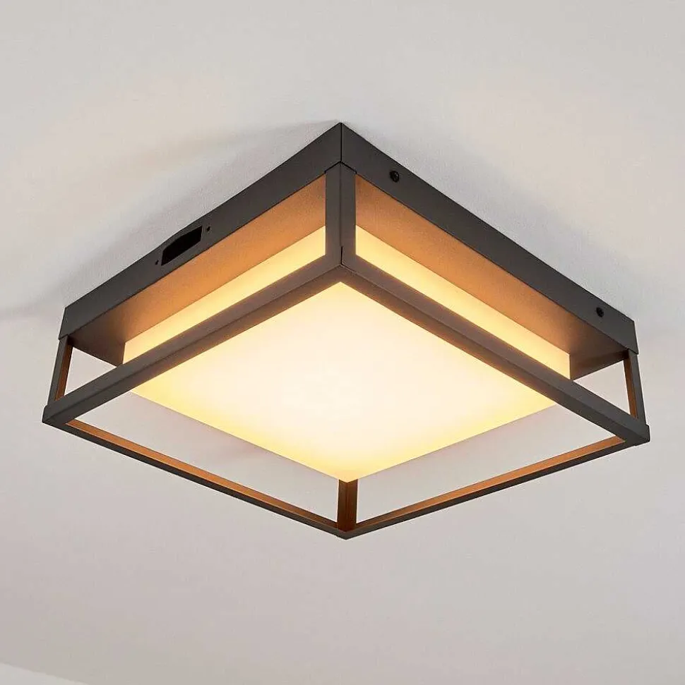 Plafonnier Salmi Led Brun, Couleur Bois, Noir, 1 Lumiere, Telecommandes