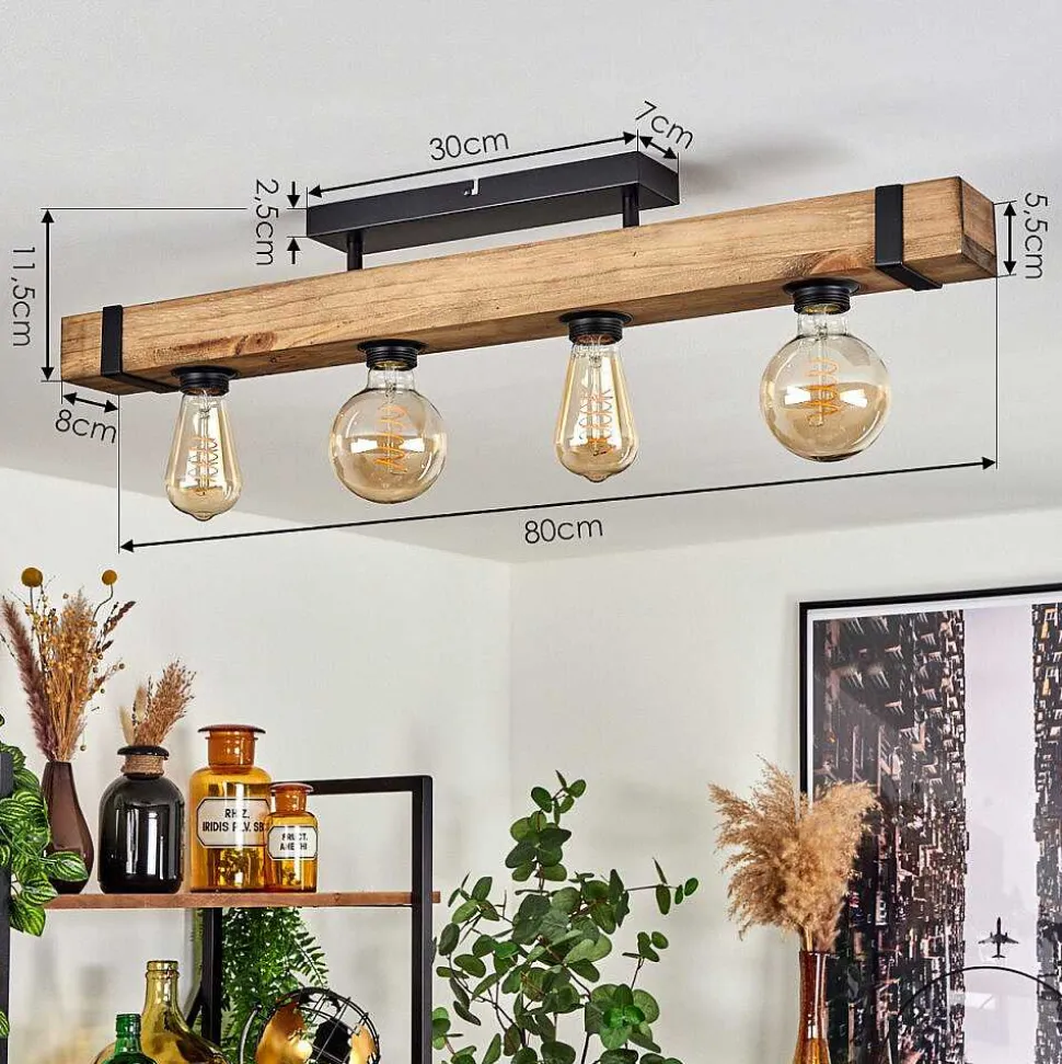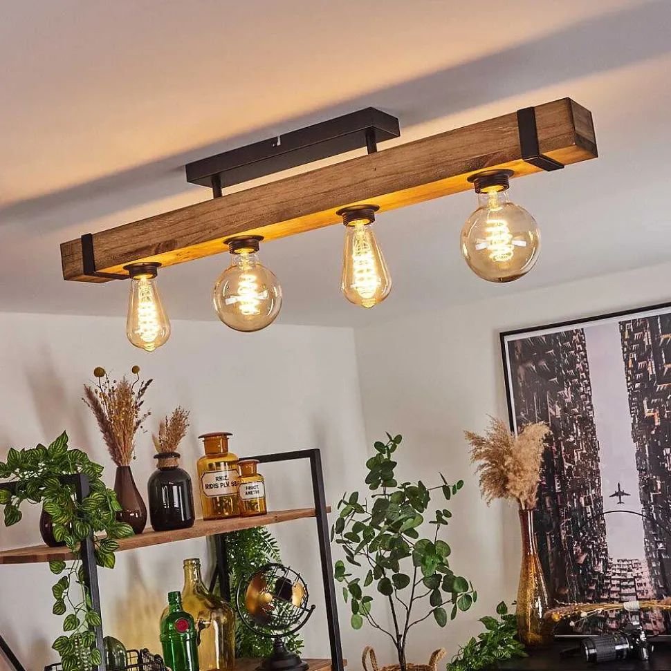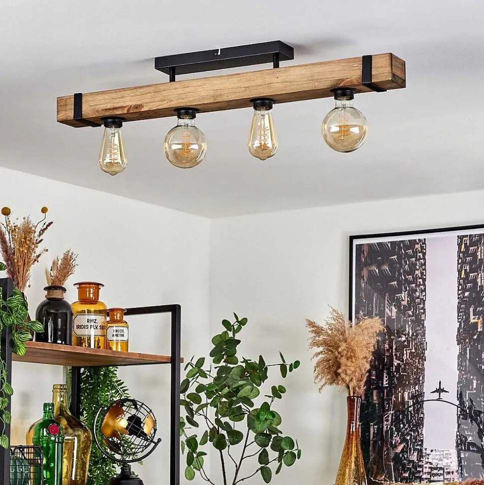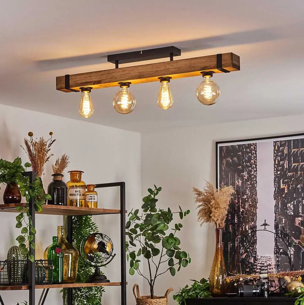 Plafonnier Salmi Led Couleur Bois, Noir, Blanc, 1 Lumiere, Telecommandes