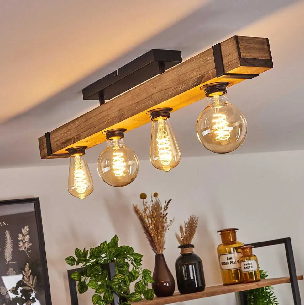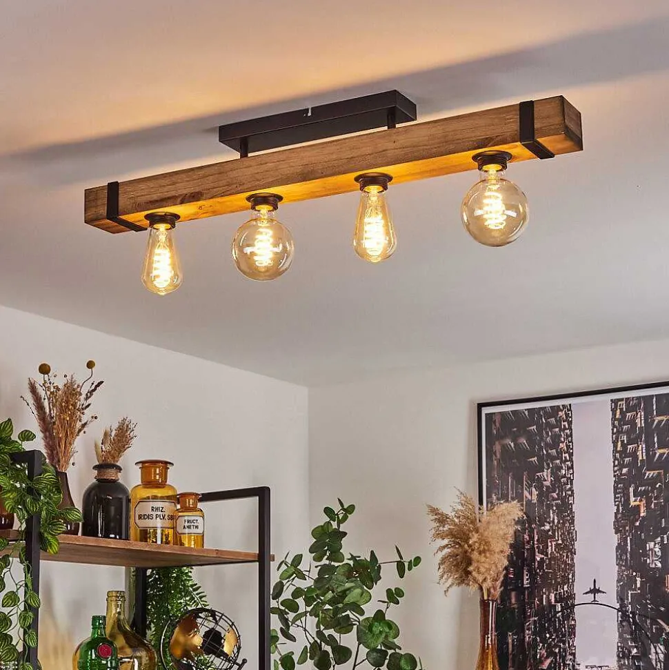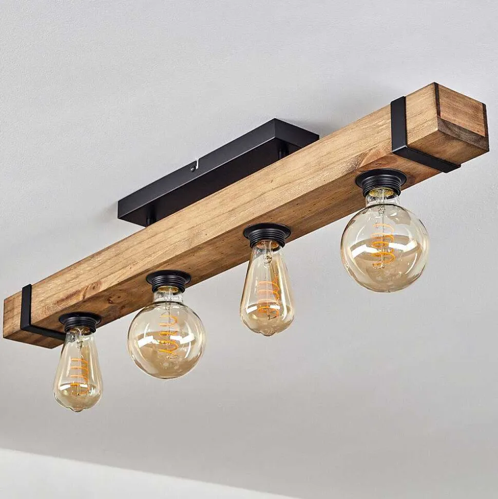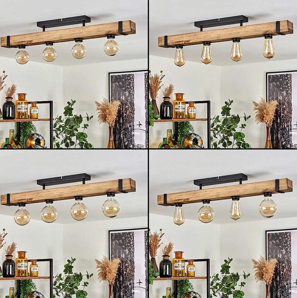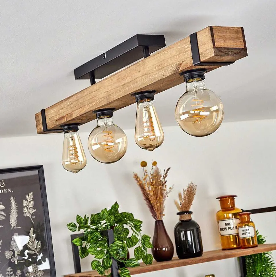 Plafonnier Salmi Led Couleur Bois, Noir, Blanc, 1 Lumiere, Telecommandes