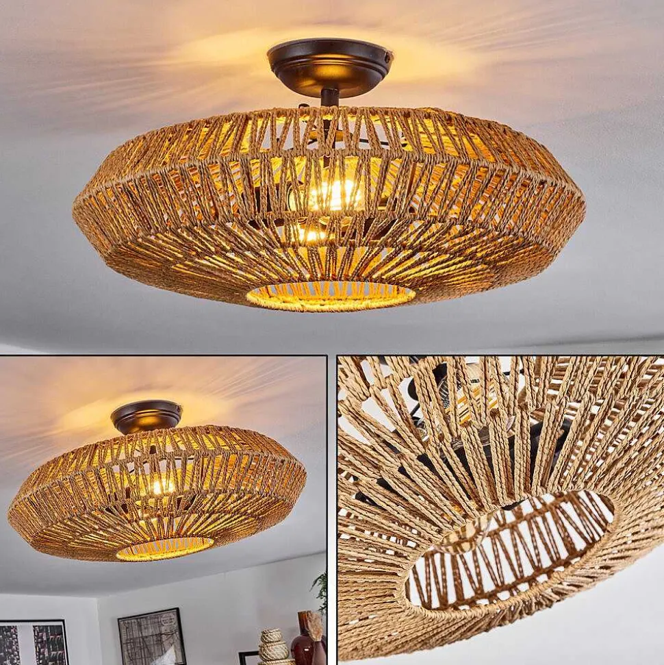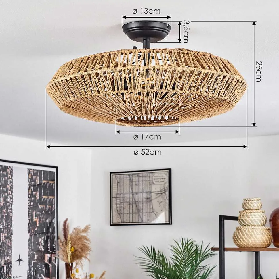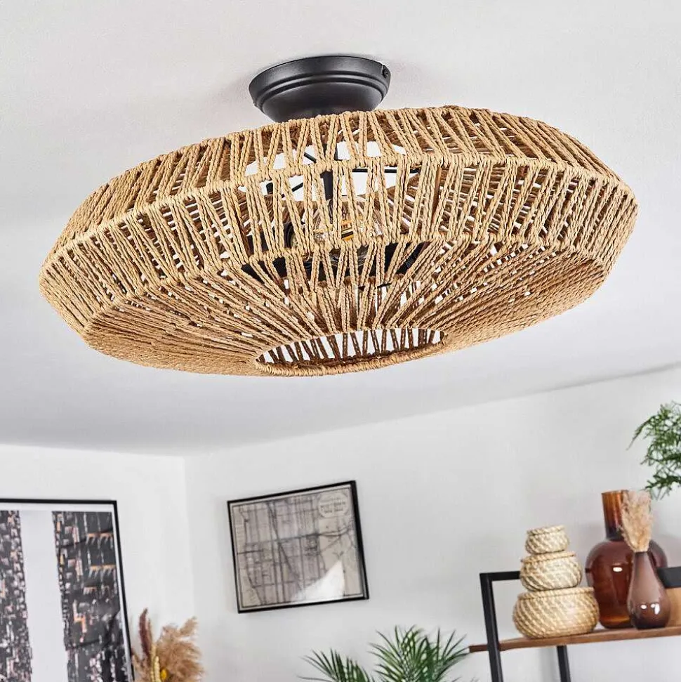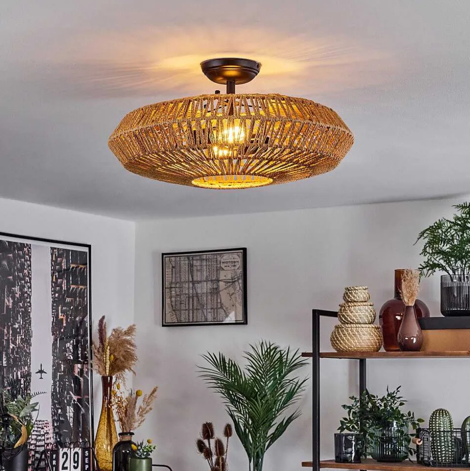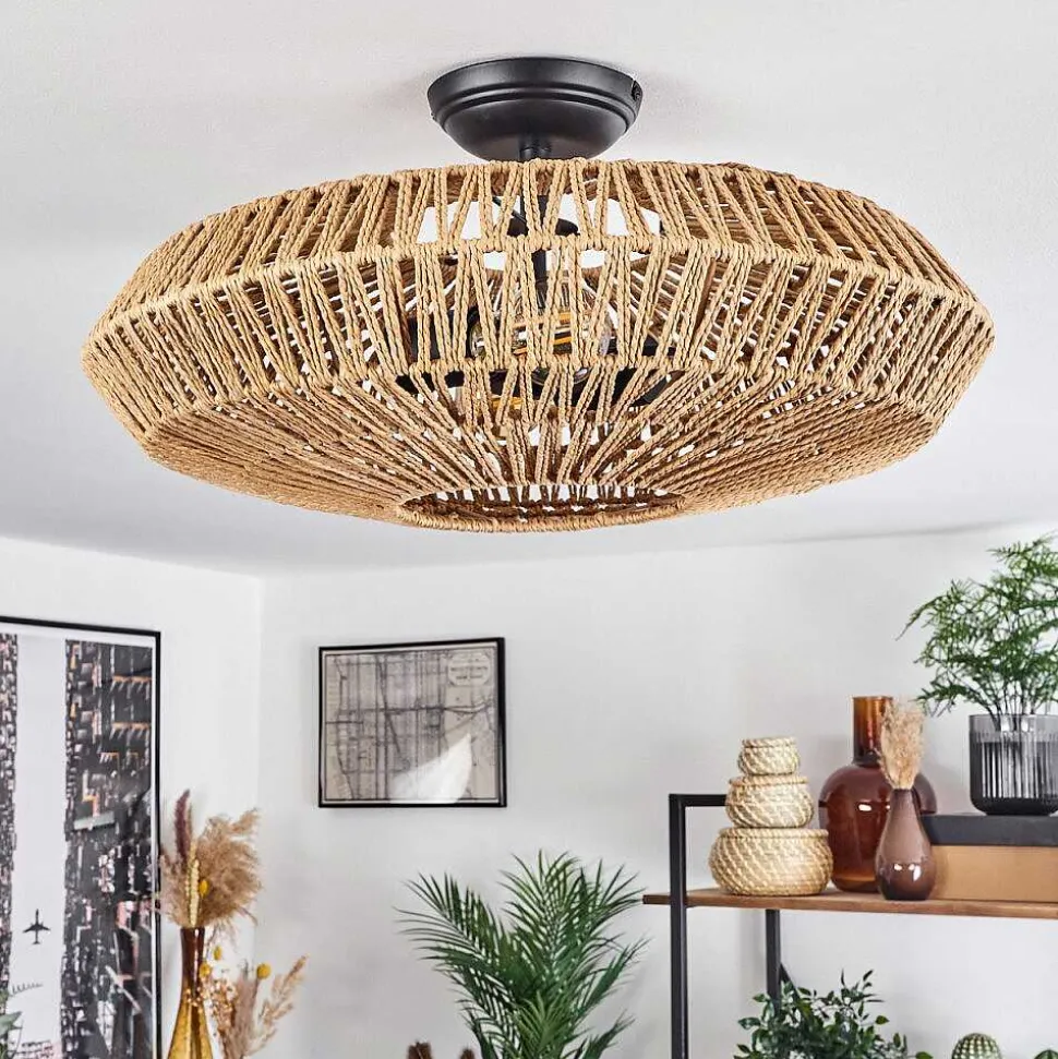 Plafonnier Salmi Led Brun, Couleur Bois, Noir, 1 Lumiere, Telecommandes