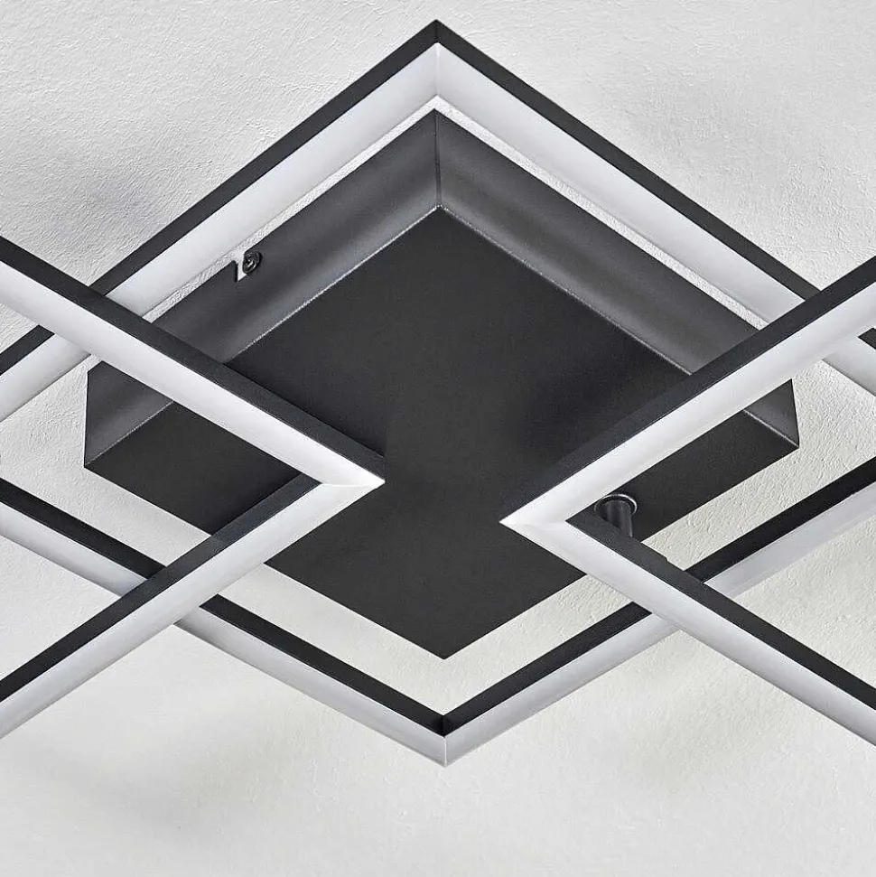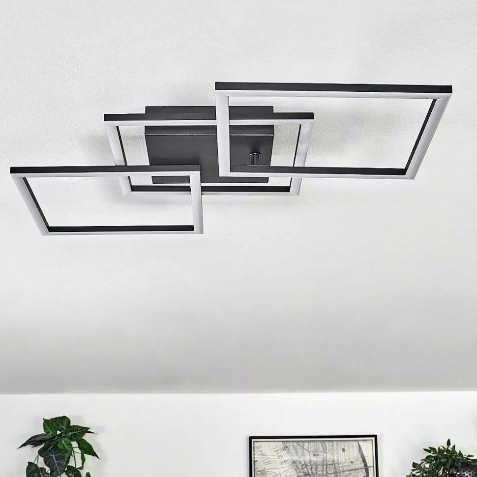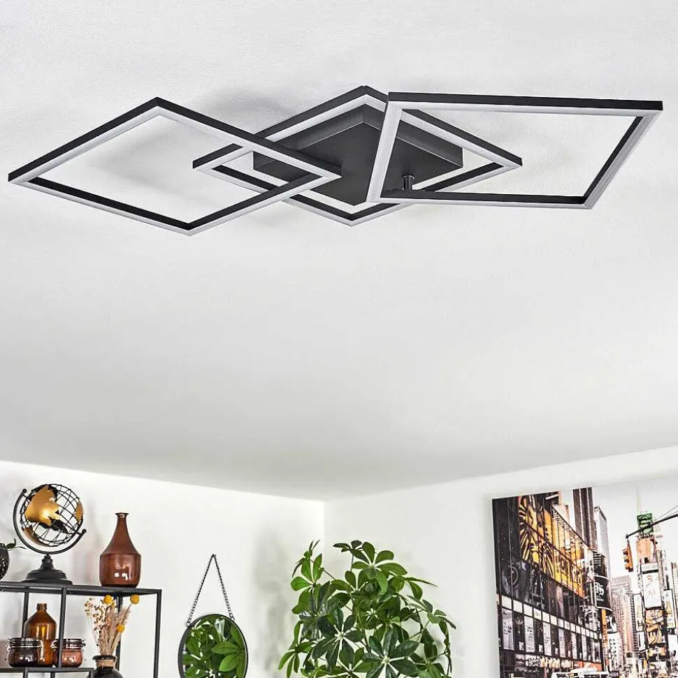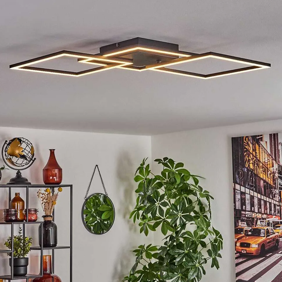 Plafonnier Salmi Led Brun, Couleur Bois, Noir, 1 Lumiere, Telecommandes