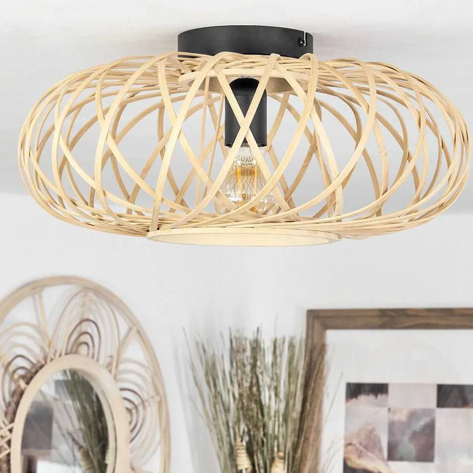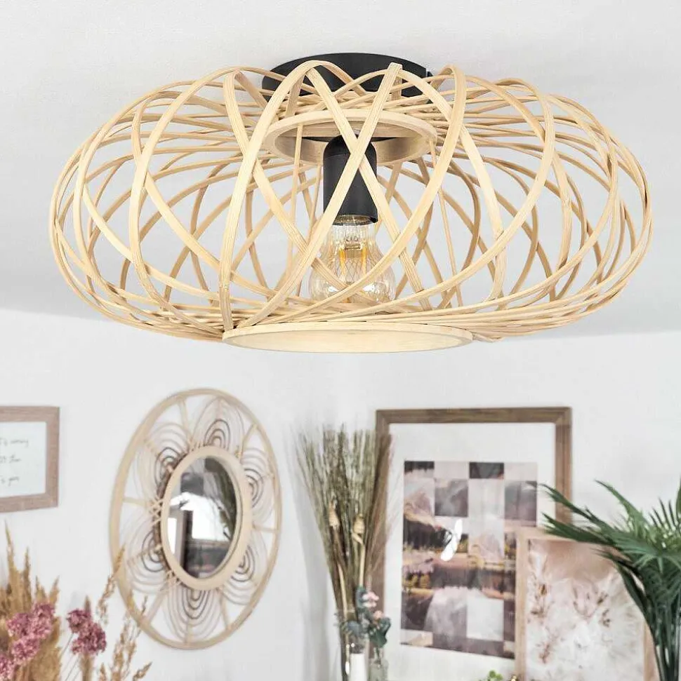 Plafonnier Salmi Led Couleur Bois, Noir, Blanc, 1 Lumiere, Telecommandes