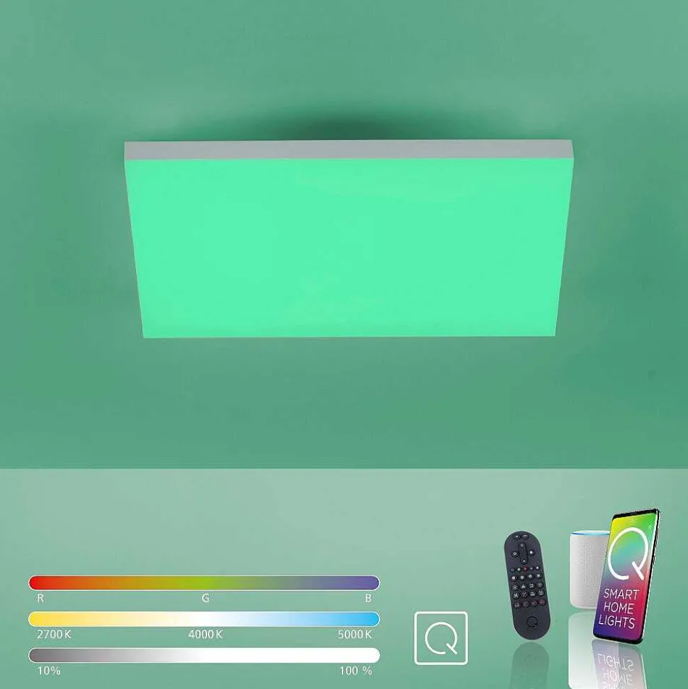 Plafonnier Paul Neuhaus Q-Lenny Led Blanc, 1 Lumiere, Telecommandes, Changeur De Couleurs