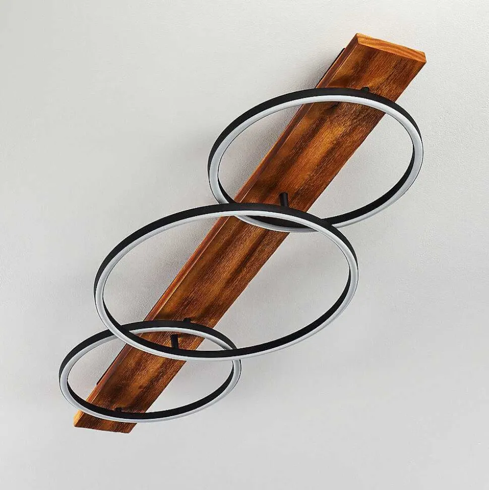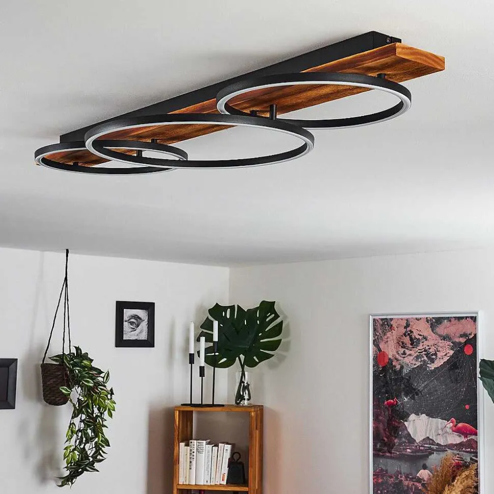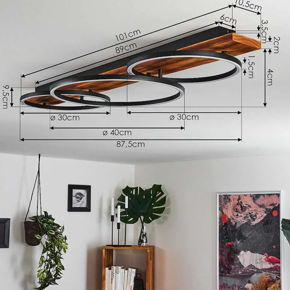 Plafonnier Salmi Led Couleur Bois, Noir, Blanc, 1 Lumiere, Telecommandes