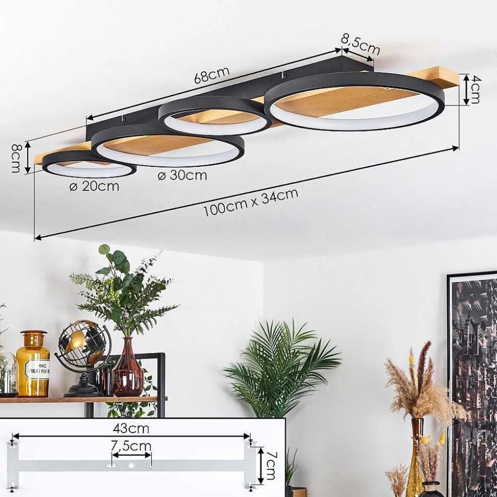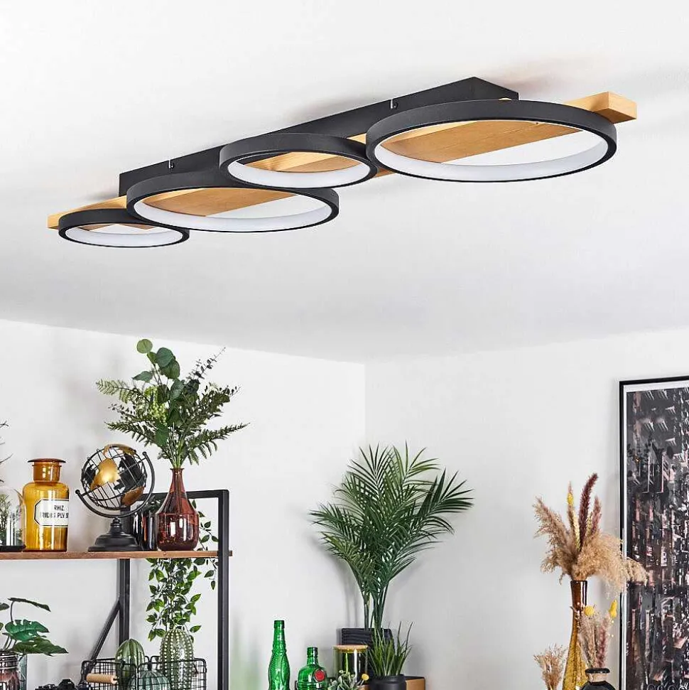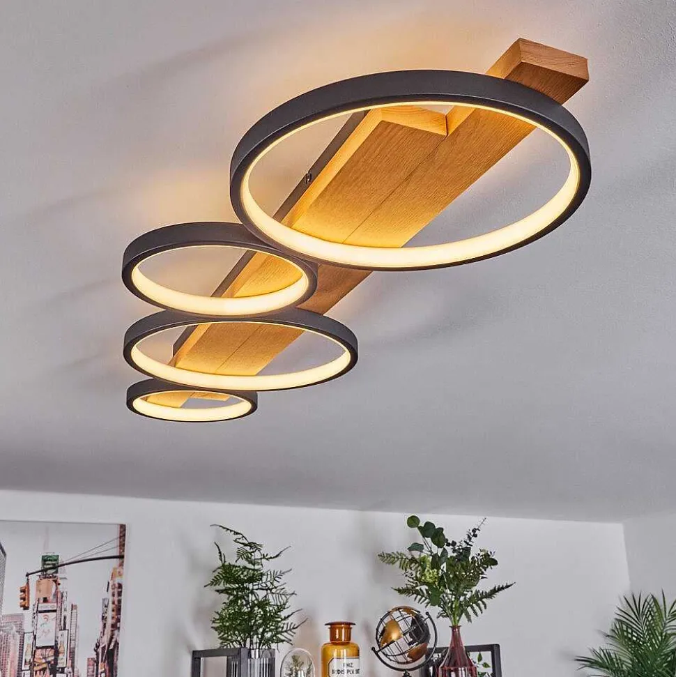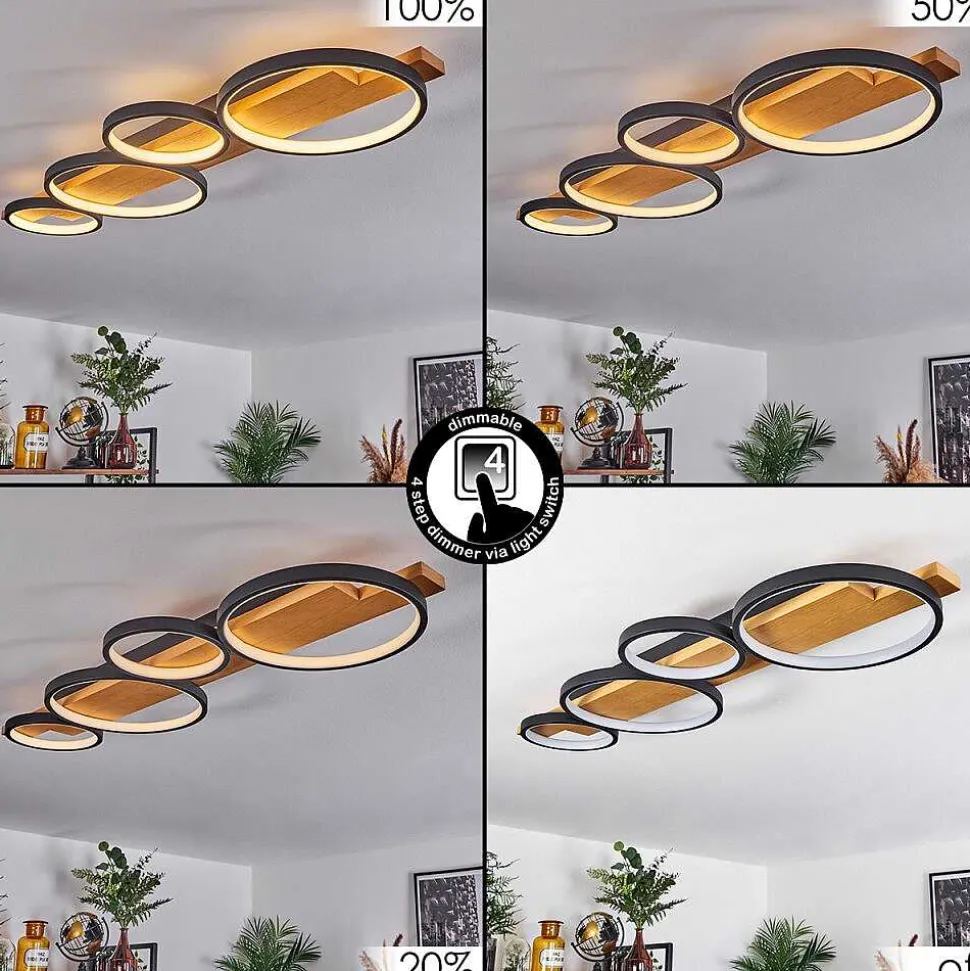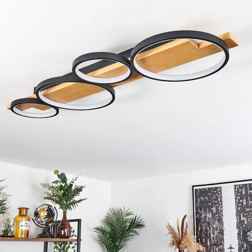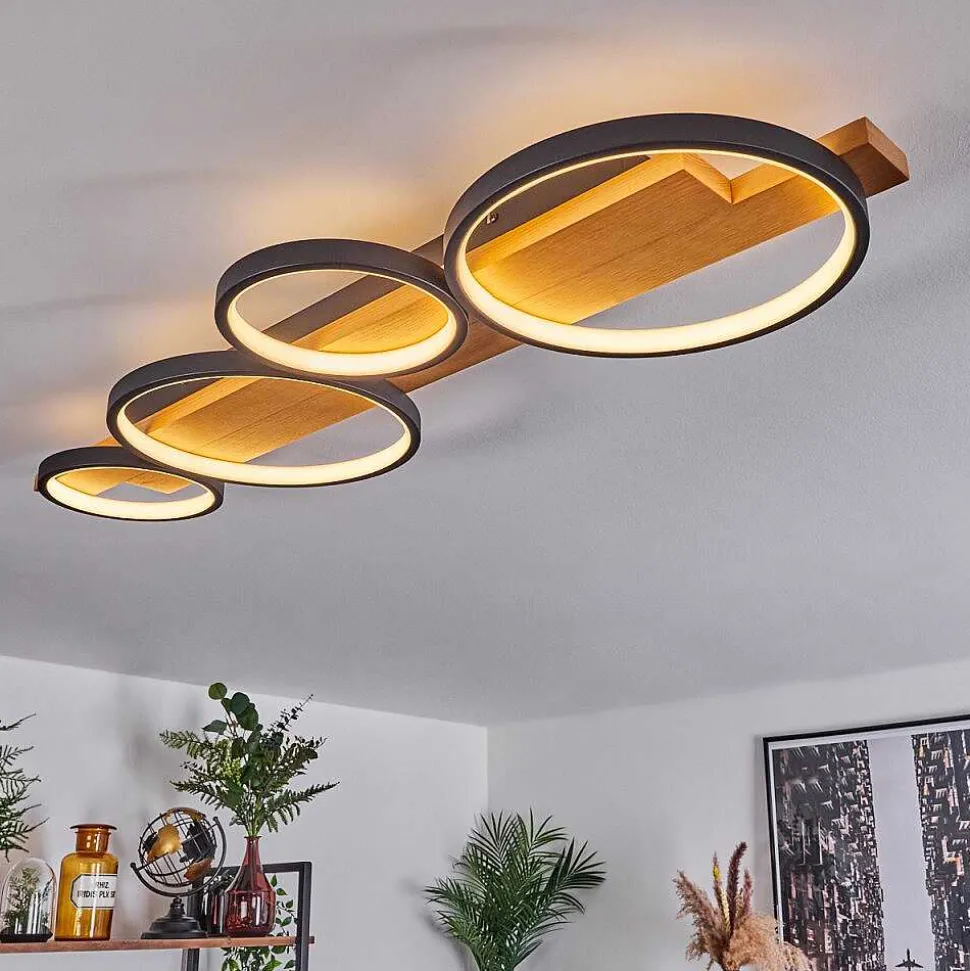 Plafonnier Salmi Led Brun, Couleur Bois, Noir, 1 Lumiere, Telecommandes