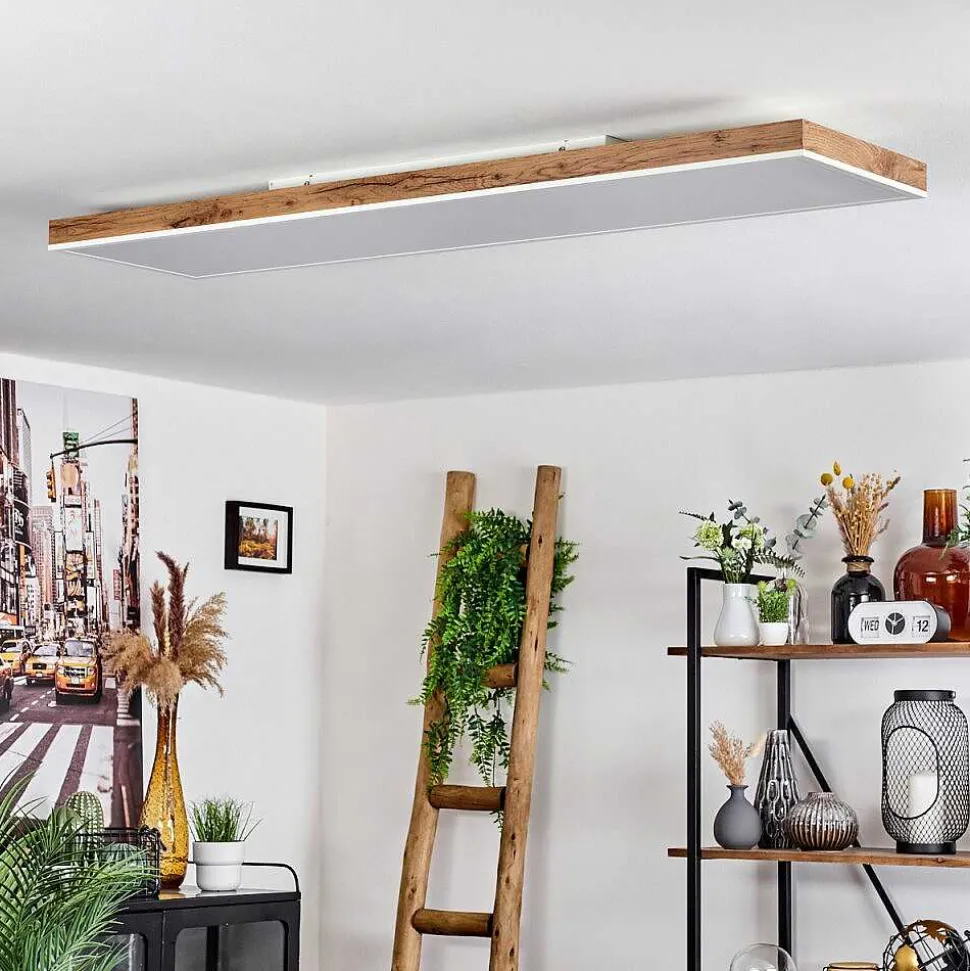 Plafonnier Salmi Led Brun, Couleur Bois, Noir, 1 Lumiere, Telecommandes