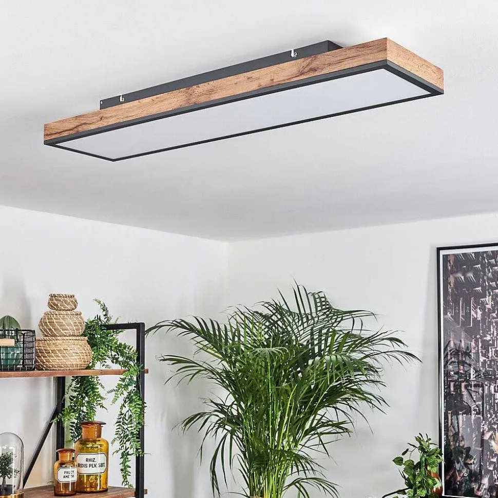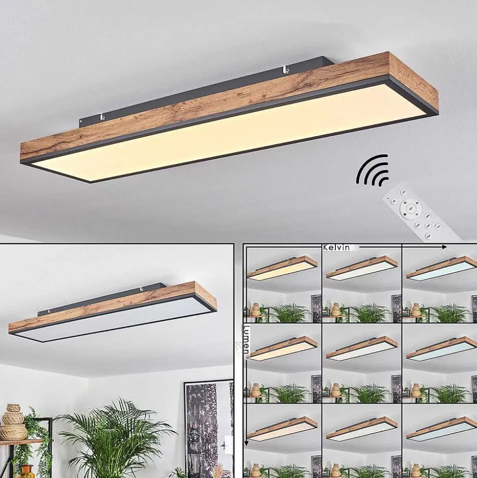 Plafonnier Salmi Led Couleur Bois, Noir, Blanc, 1 Lumiere, Telecommandes