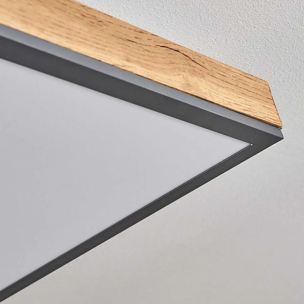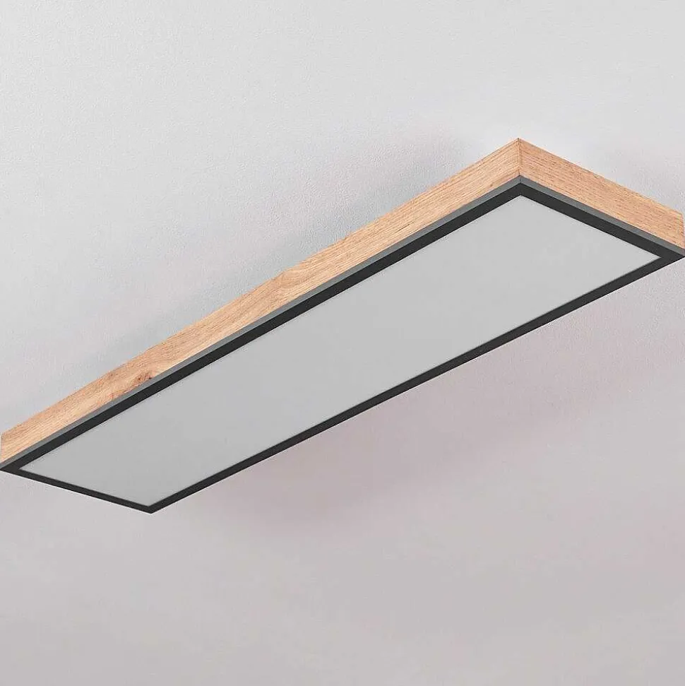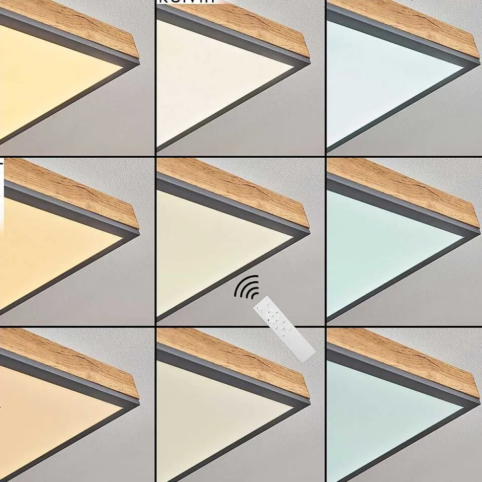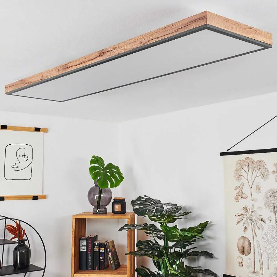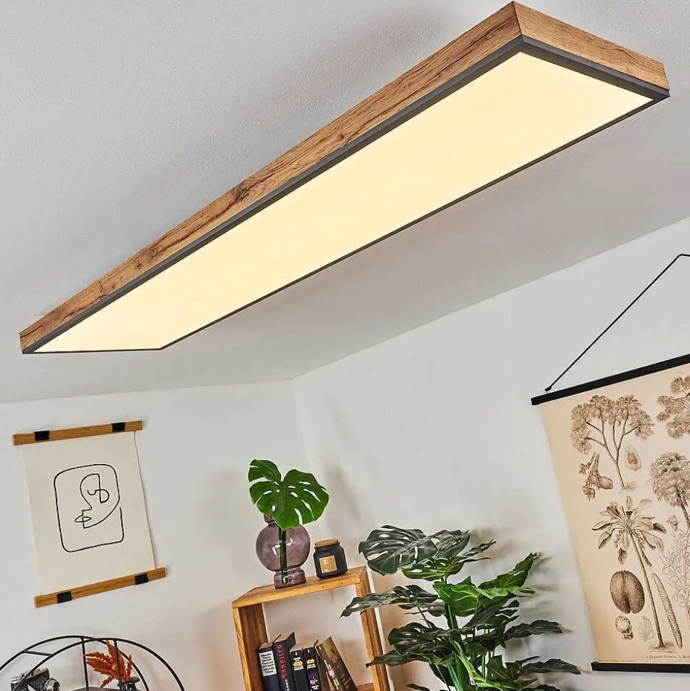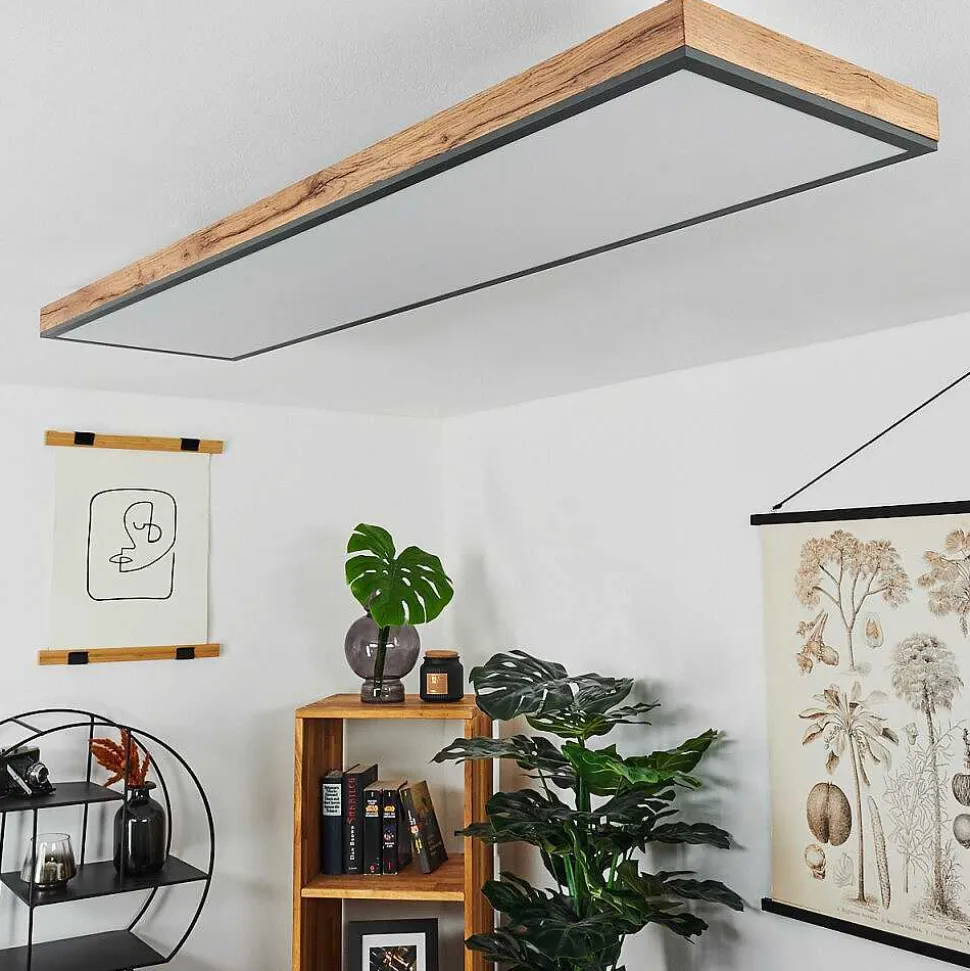 Plafonnier Salmi Led Brun, Couleur Bois, Noir, 1 Lumiere, Telecommandes