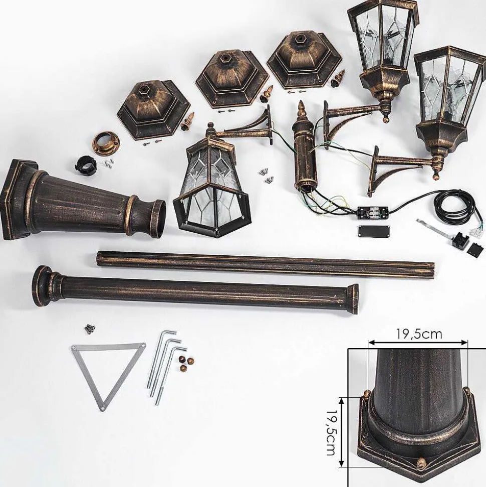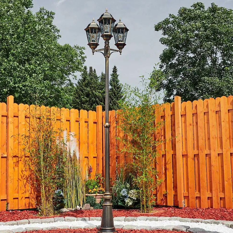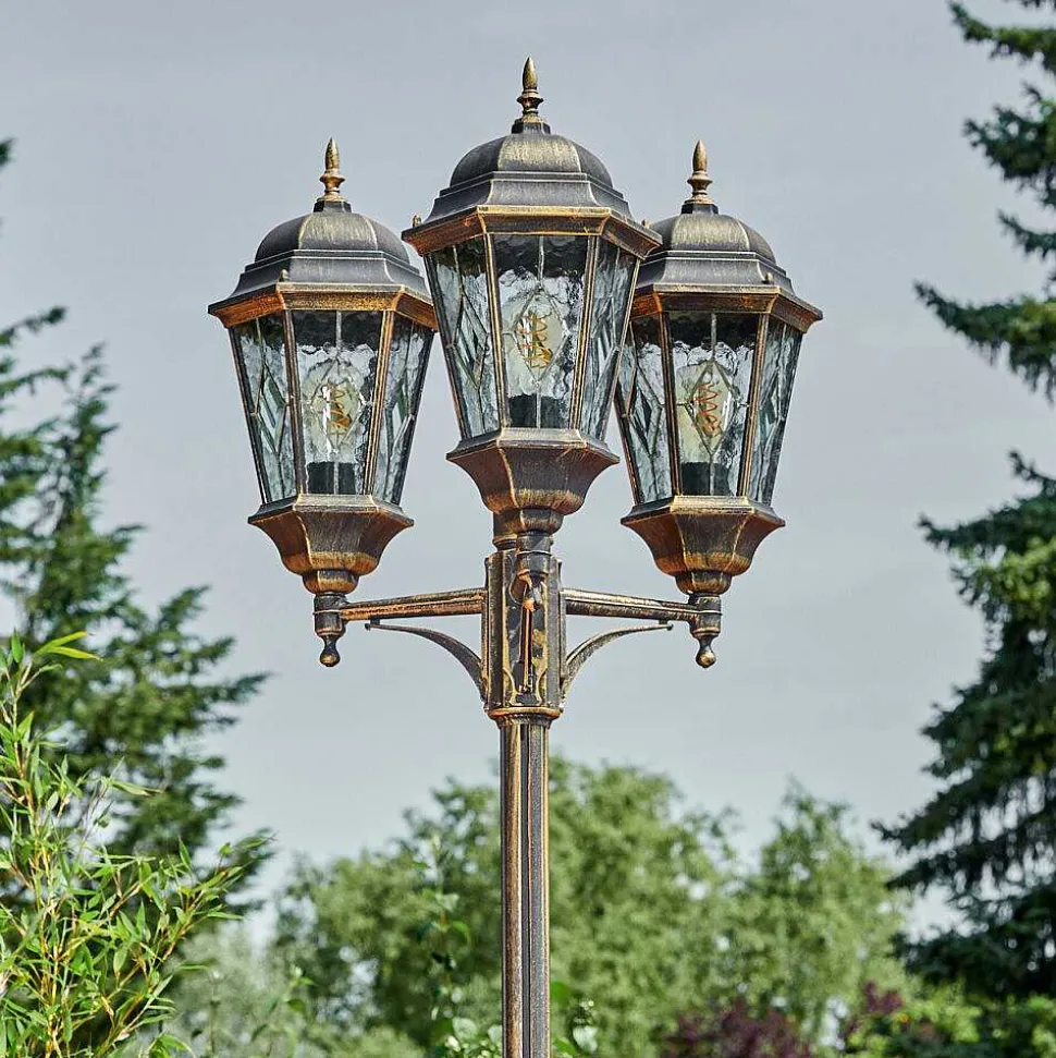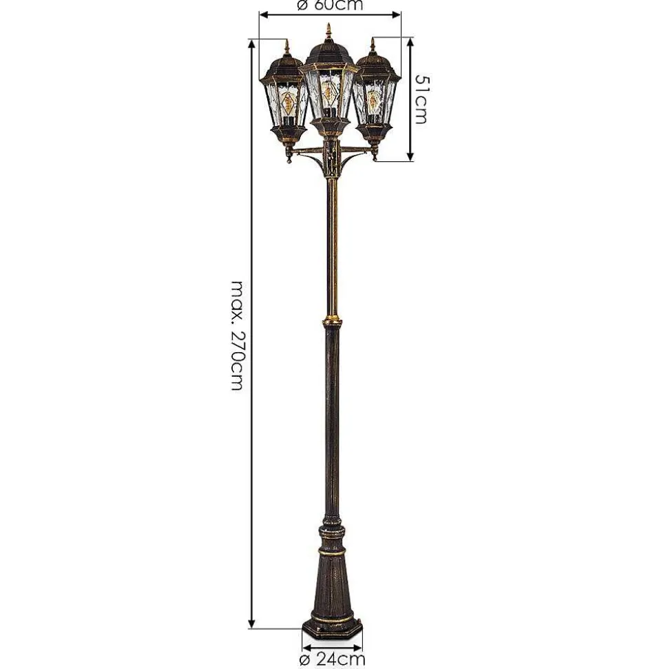 Reverbere Hongkong Or, Laiton, Transparent, 3 Lumieres