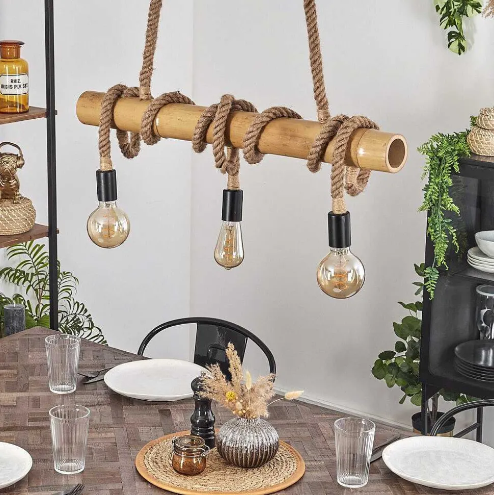 Plafonnier Salmi Led Brun, Couleur Bois, Noir, 1 Lumiere, Telecommandes