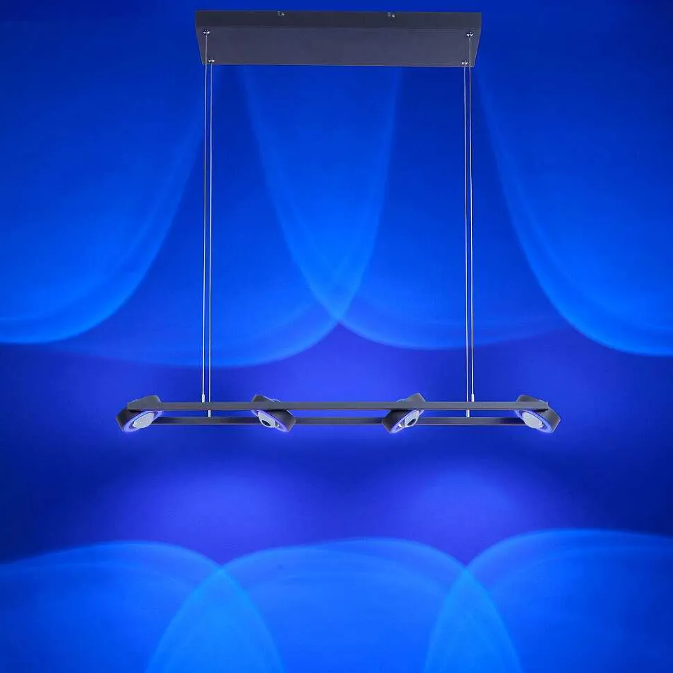Suspension Paul-Neuhaus Q-Etienne Led Acier Brosse, 4 Lumieres, Telecommandes