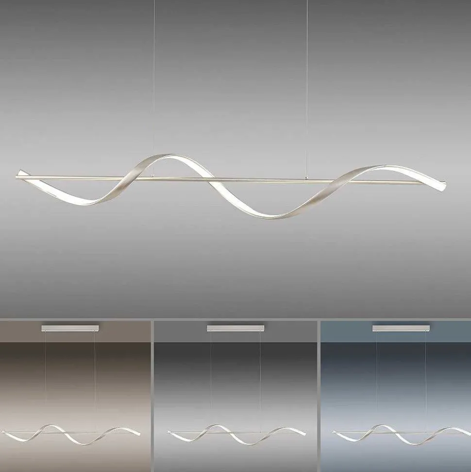 Suspension Paul-Neuhaus Q-Etienne Led Acier Brosse, 4 Lumieres, Telecommandes