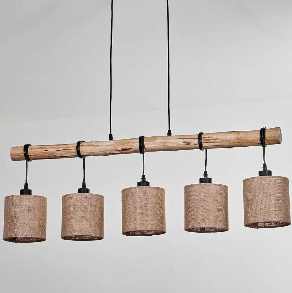 Plafonnier Salmi Led Brun, Couleur Bois, Noir, 1 Lumiere, Telecommandes