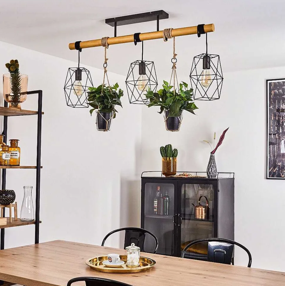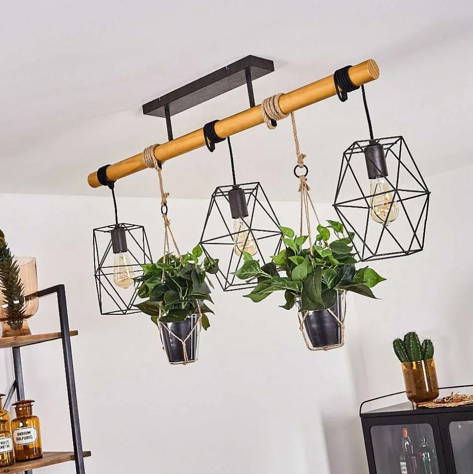 Plafonnier Salmi Led Brun, Couleur Bois, Noir, 1 Lumiere, Telecommandes