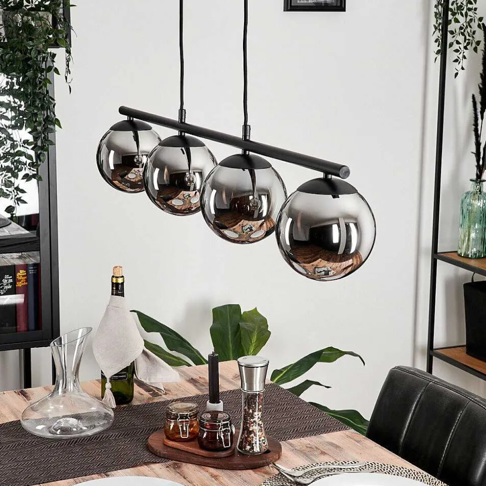 Suspension – Verre Gastor Chrome, Fume, 4 Lumieres