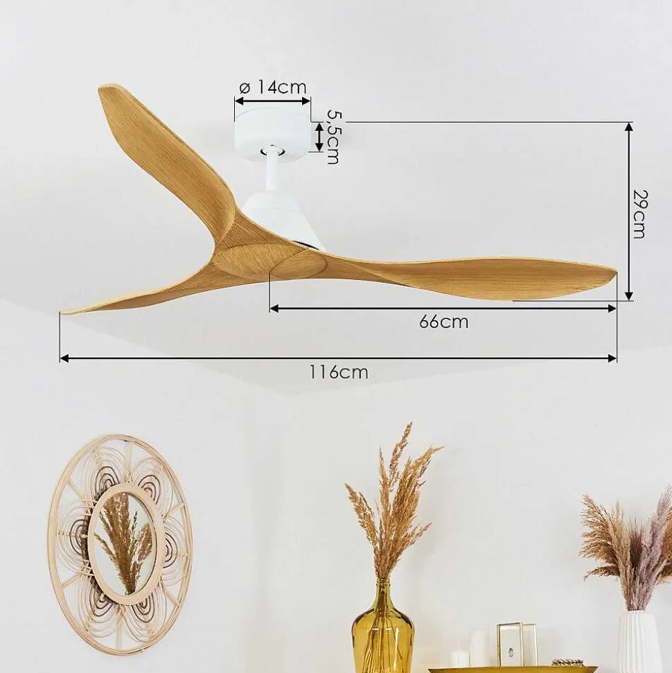 Ventilateur De Plafond Follseland Brun Clair, Couleur Bois, Blanc, Telecommandes