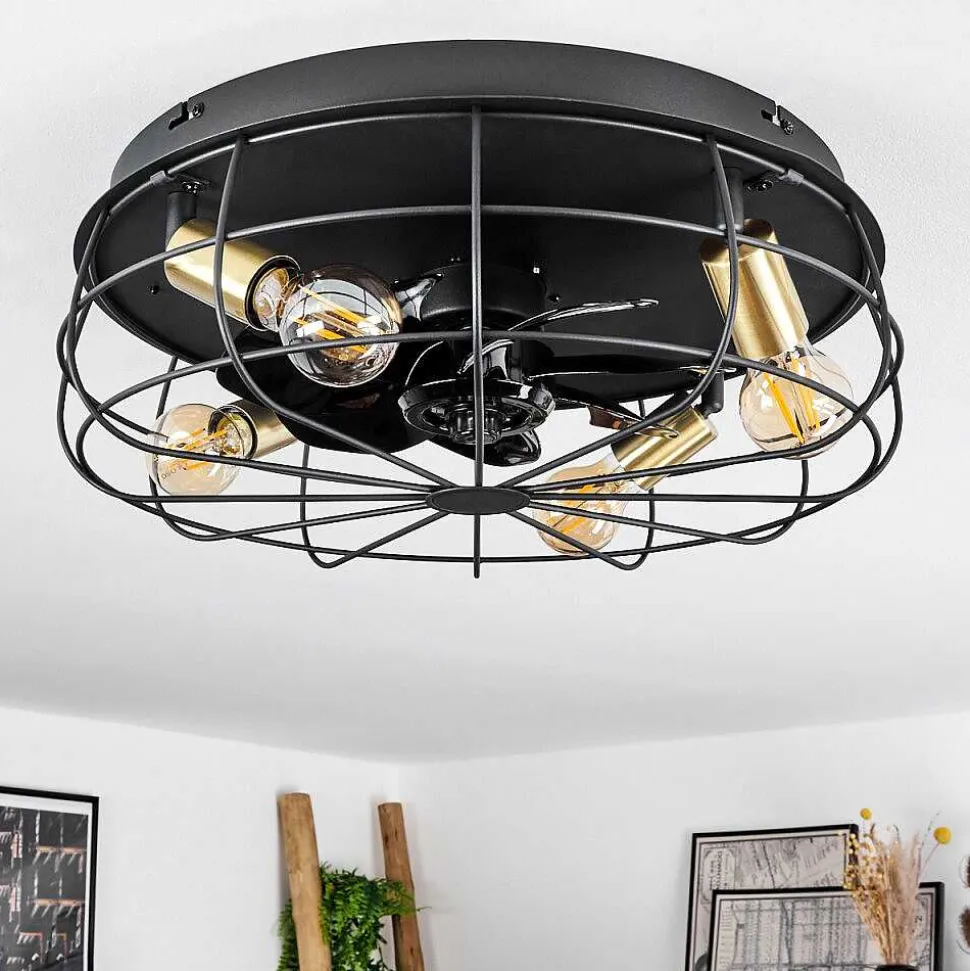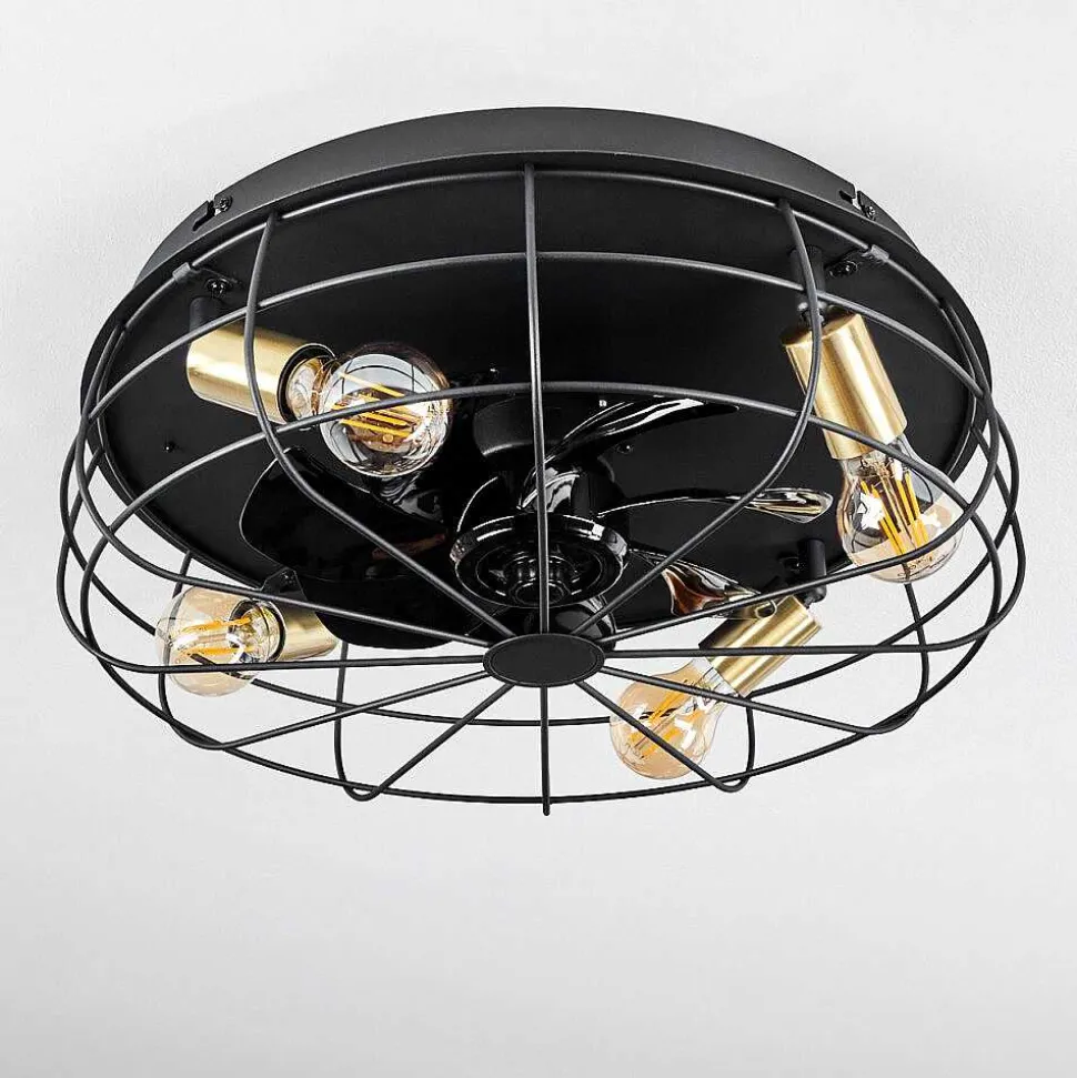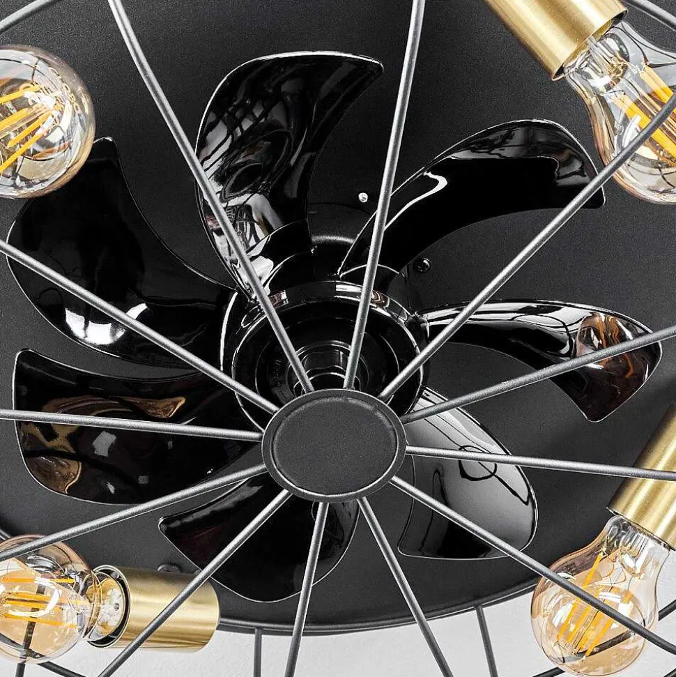 Ventilateur De Plafond Moscavide Laiton, Noir, 4 Lumieres, Telecommandes