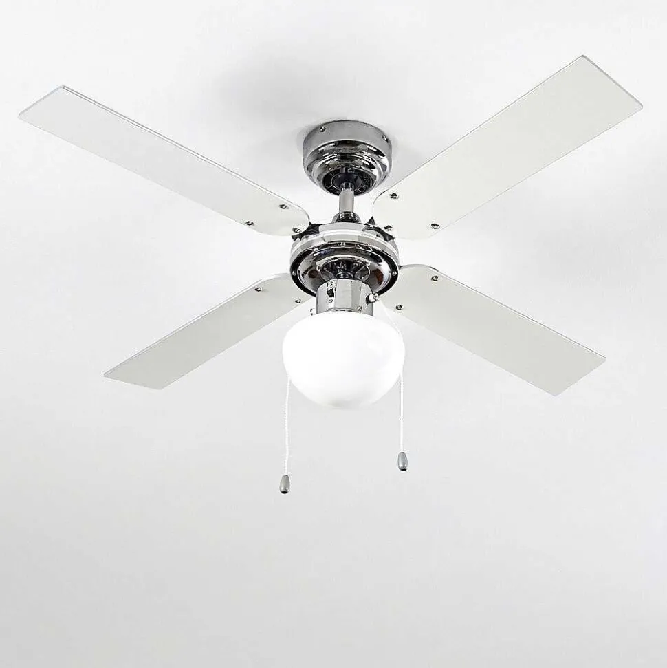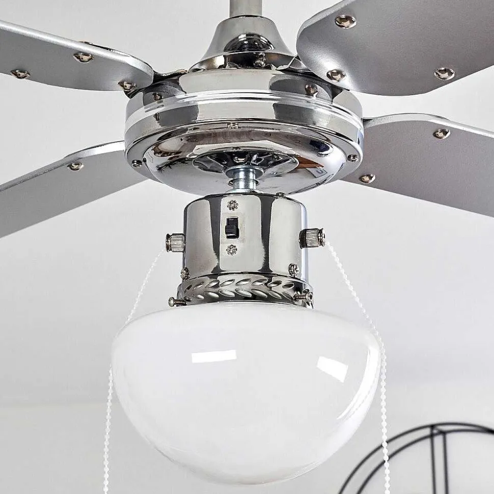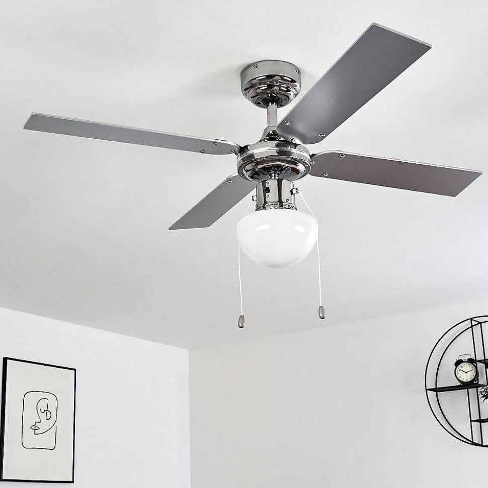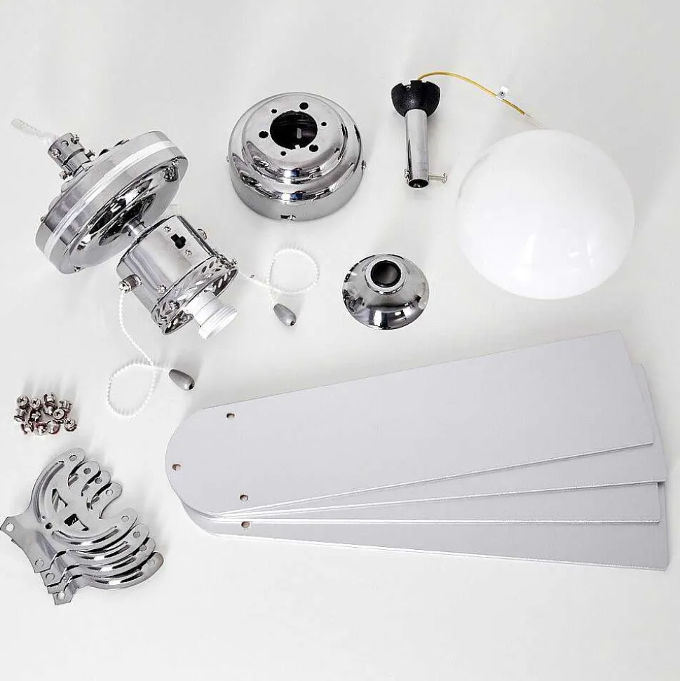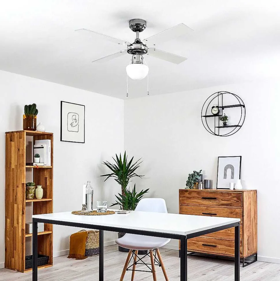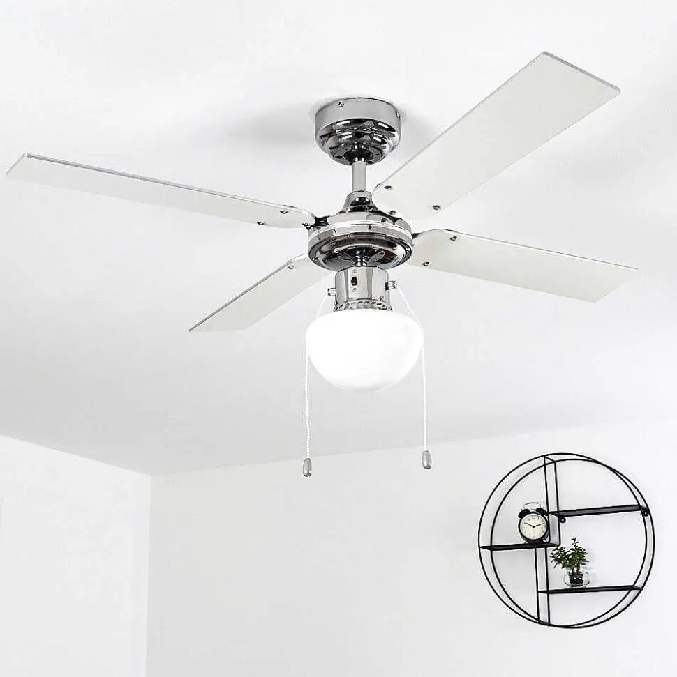 Ventilateur De Plafond Valletta Chrome, Argente, Blanc, 1 Lumiere