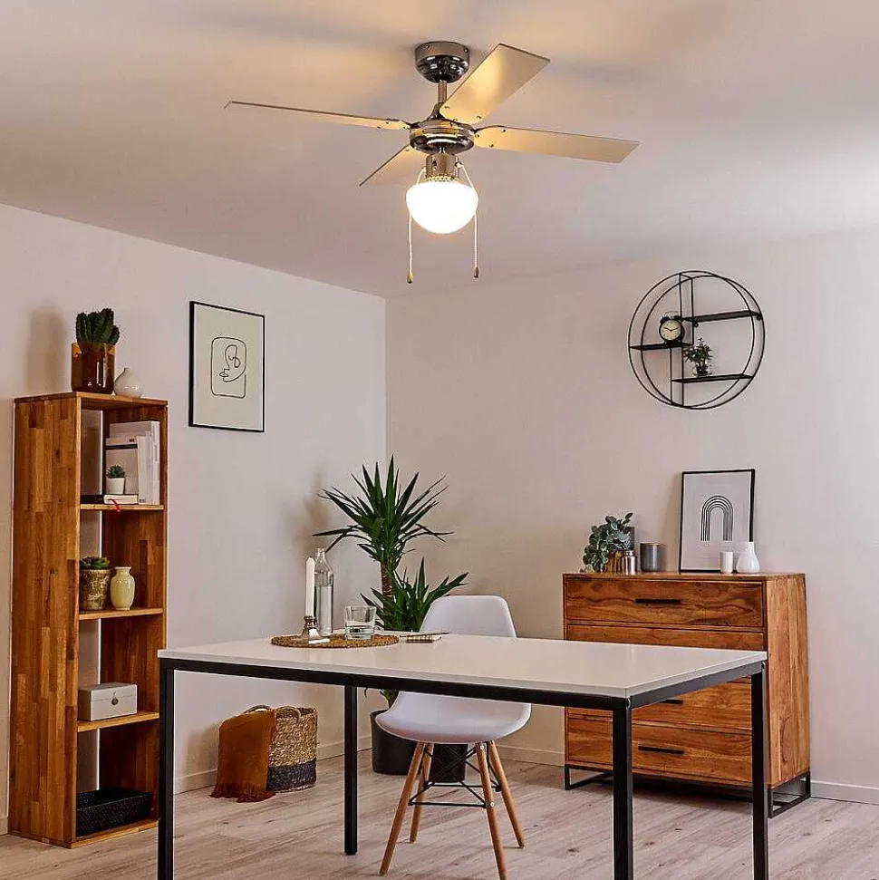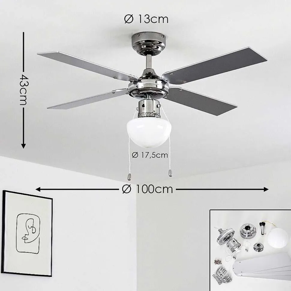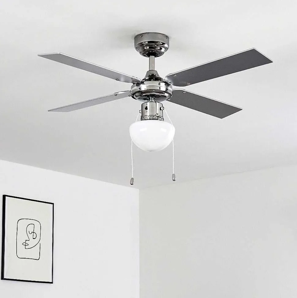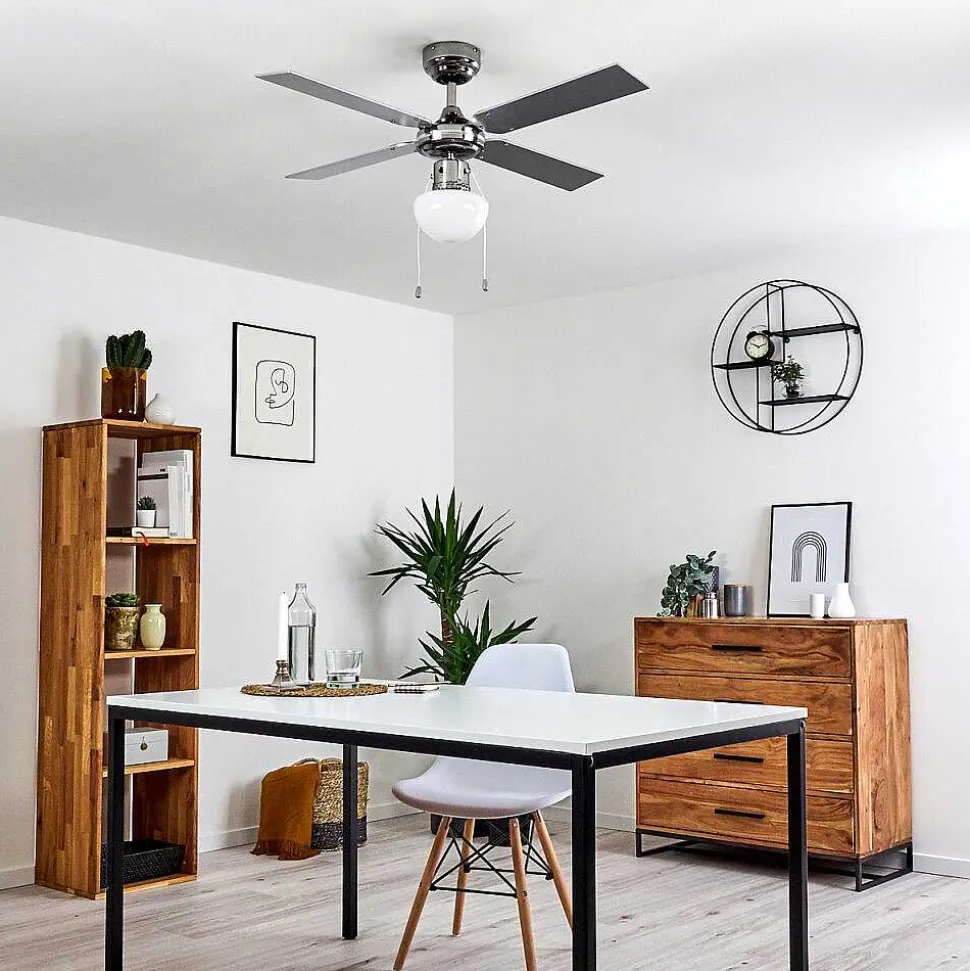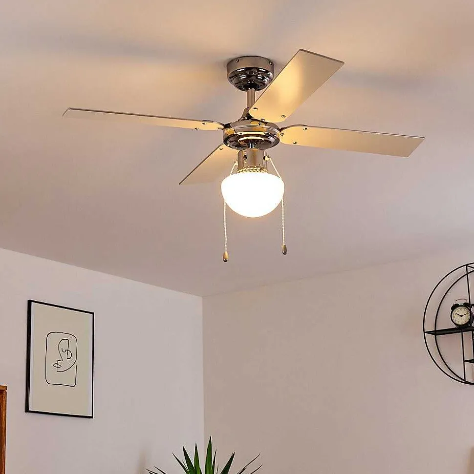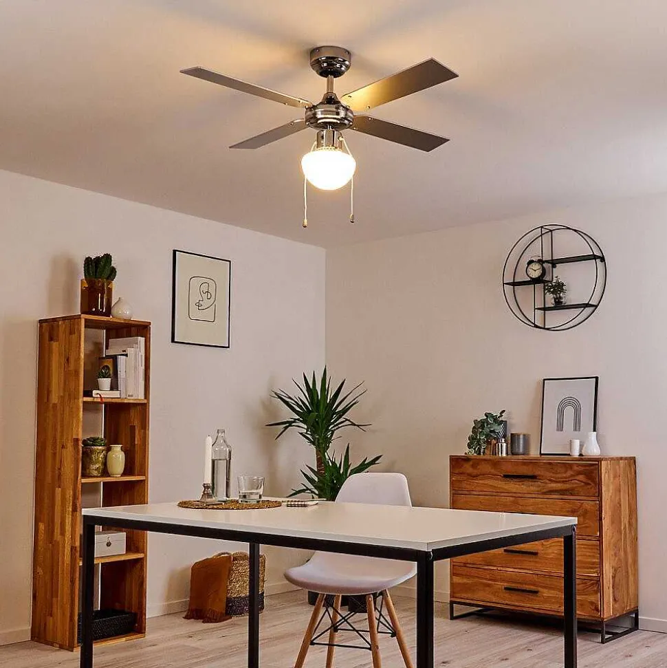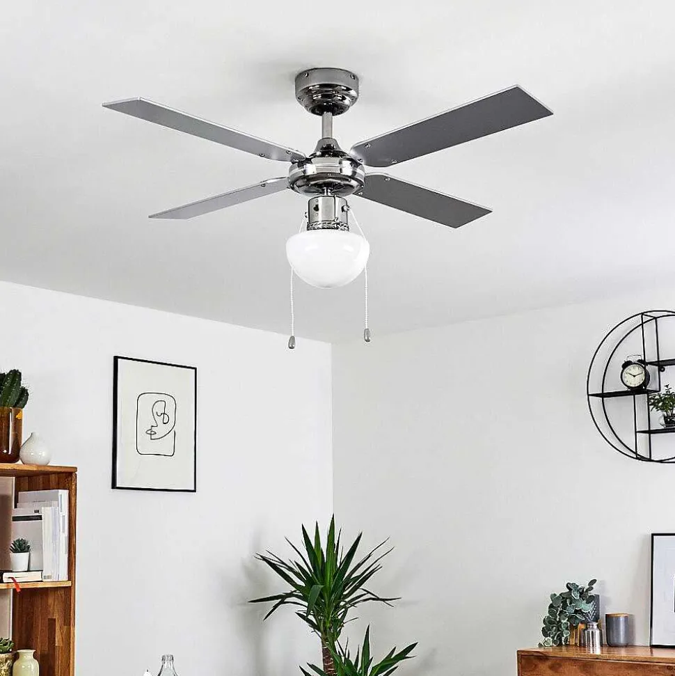 Ventilateur De Plafond Valletta Chrome, Argente, Blanc, 1 Lumiere