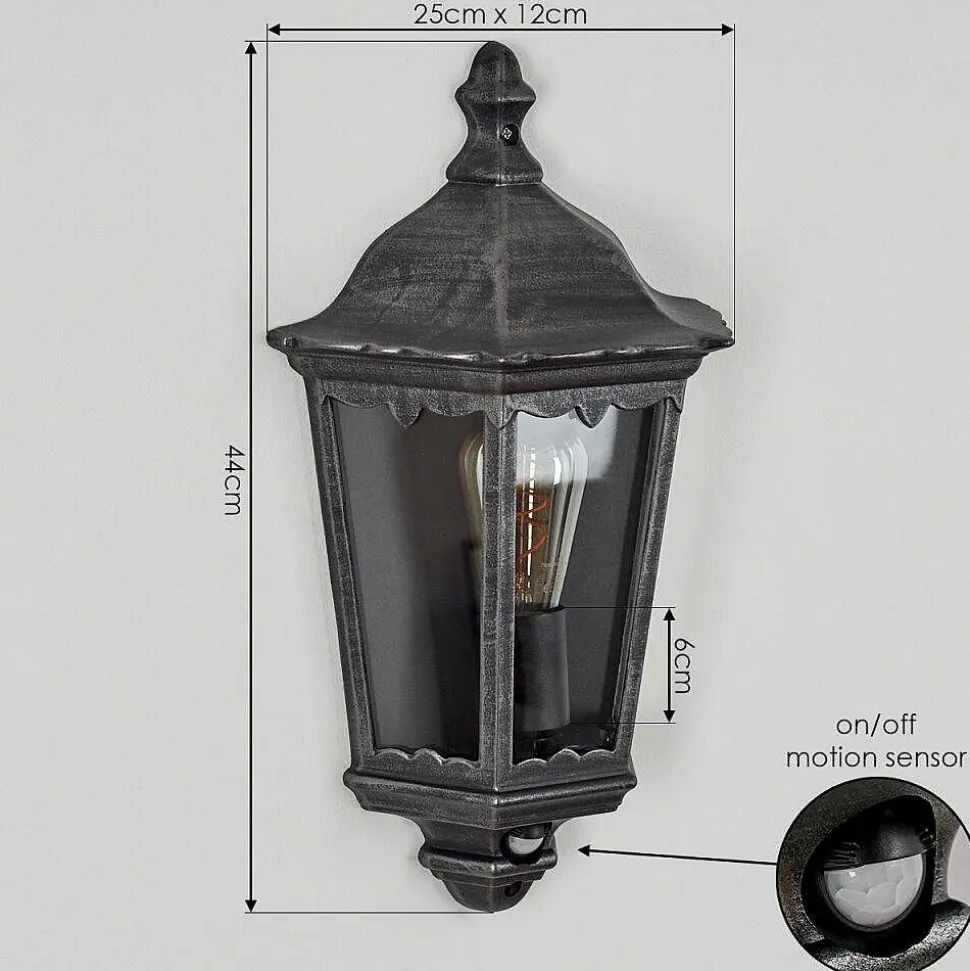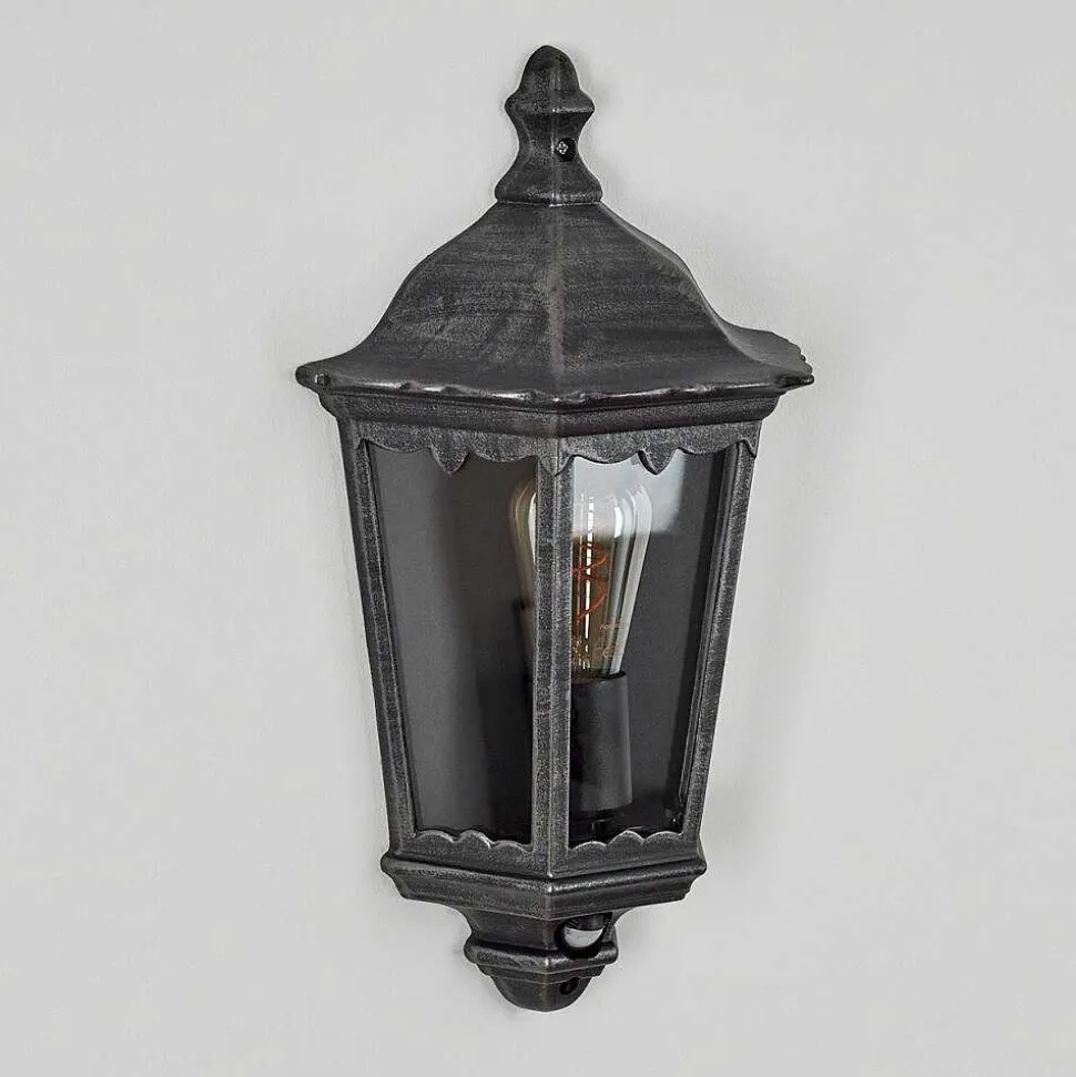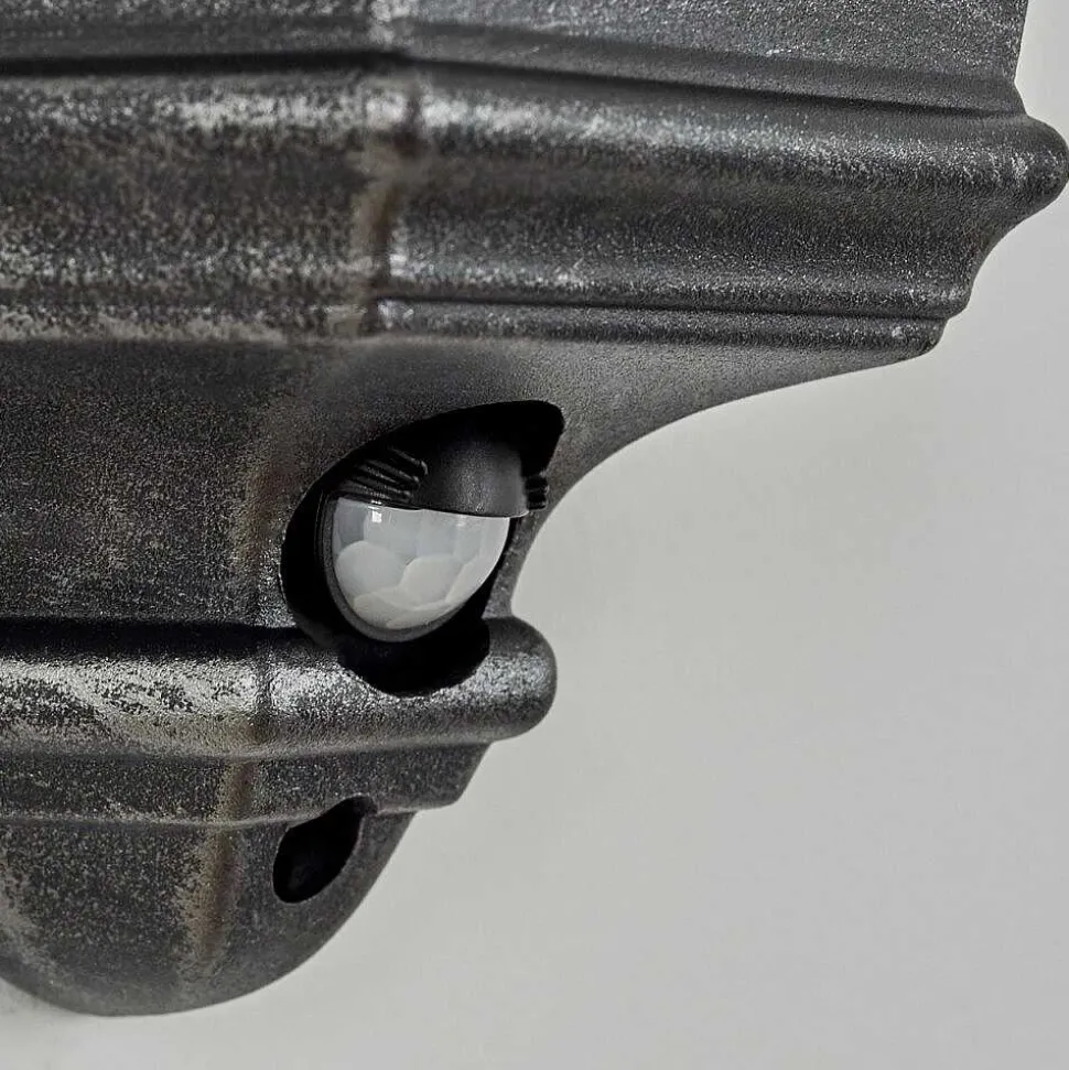 Applique Murale D’Exterieur Hongkong Noir, Argente, 1 Lumiere, Detecteur De Mouvement