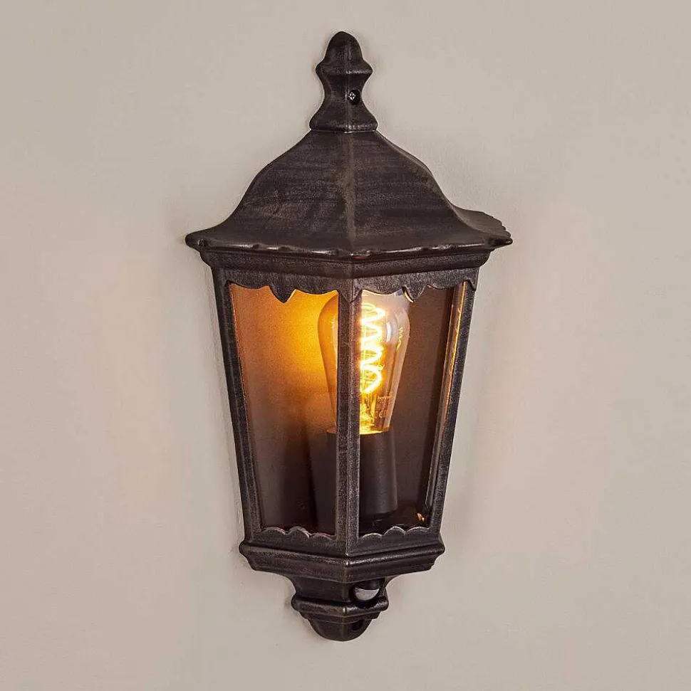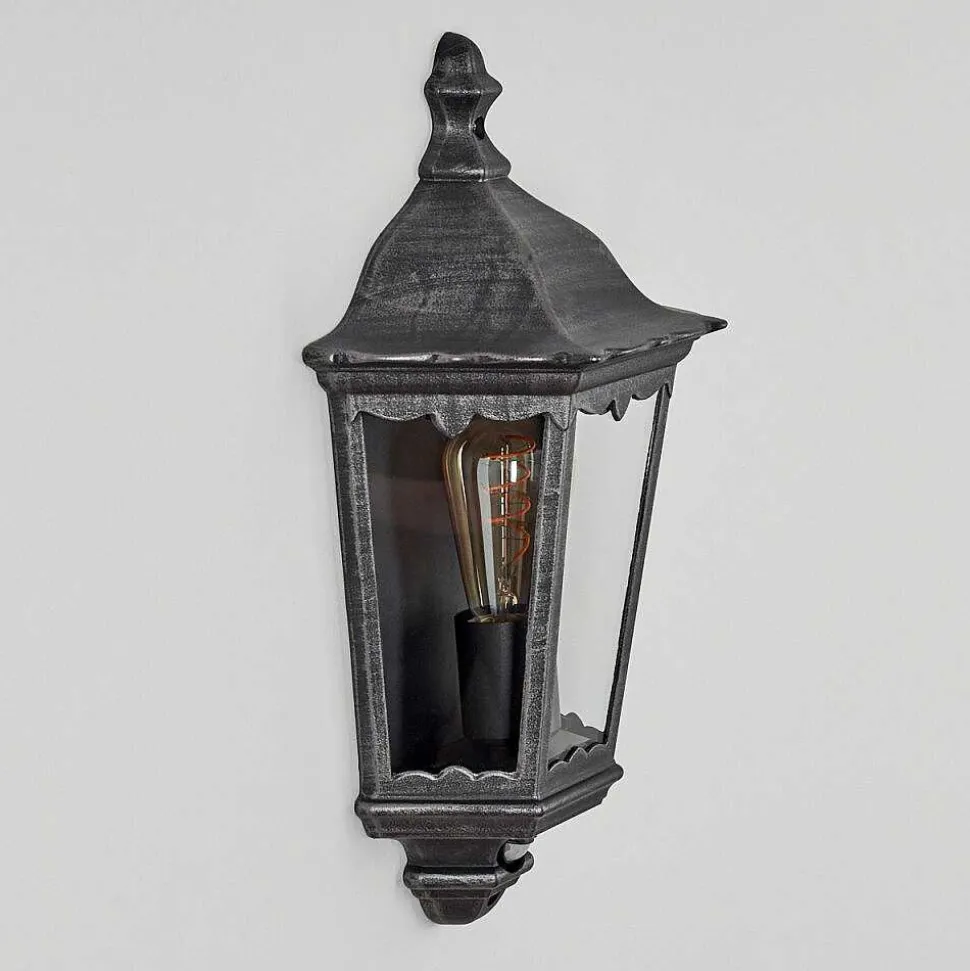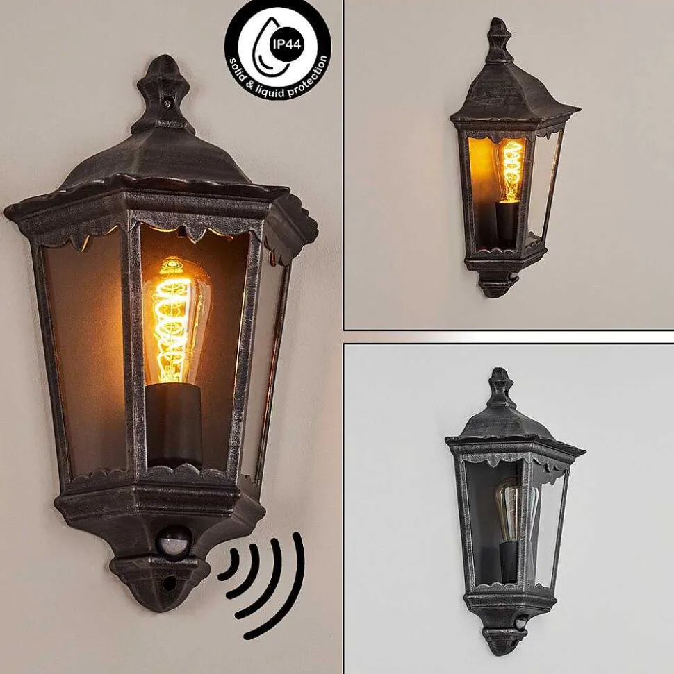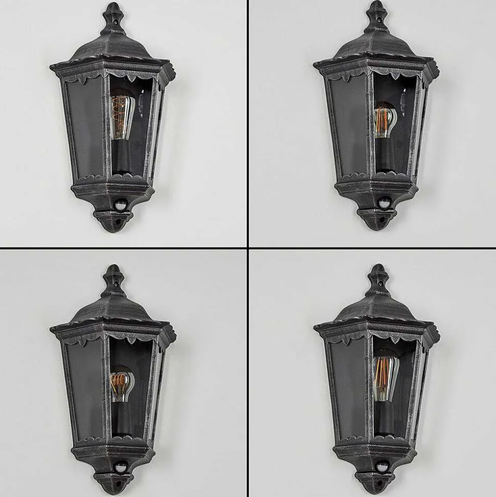 Applique Murale D’Exterieur Hongkong Noir, Argente, 1 Lumiere, Detecteur De Mouvement