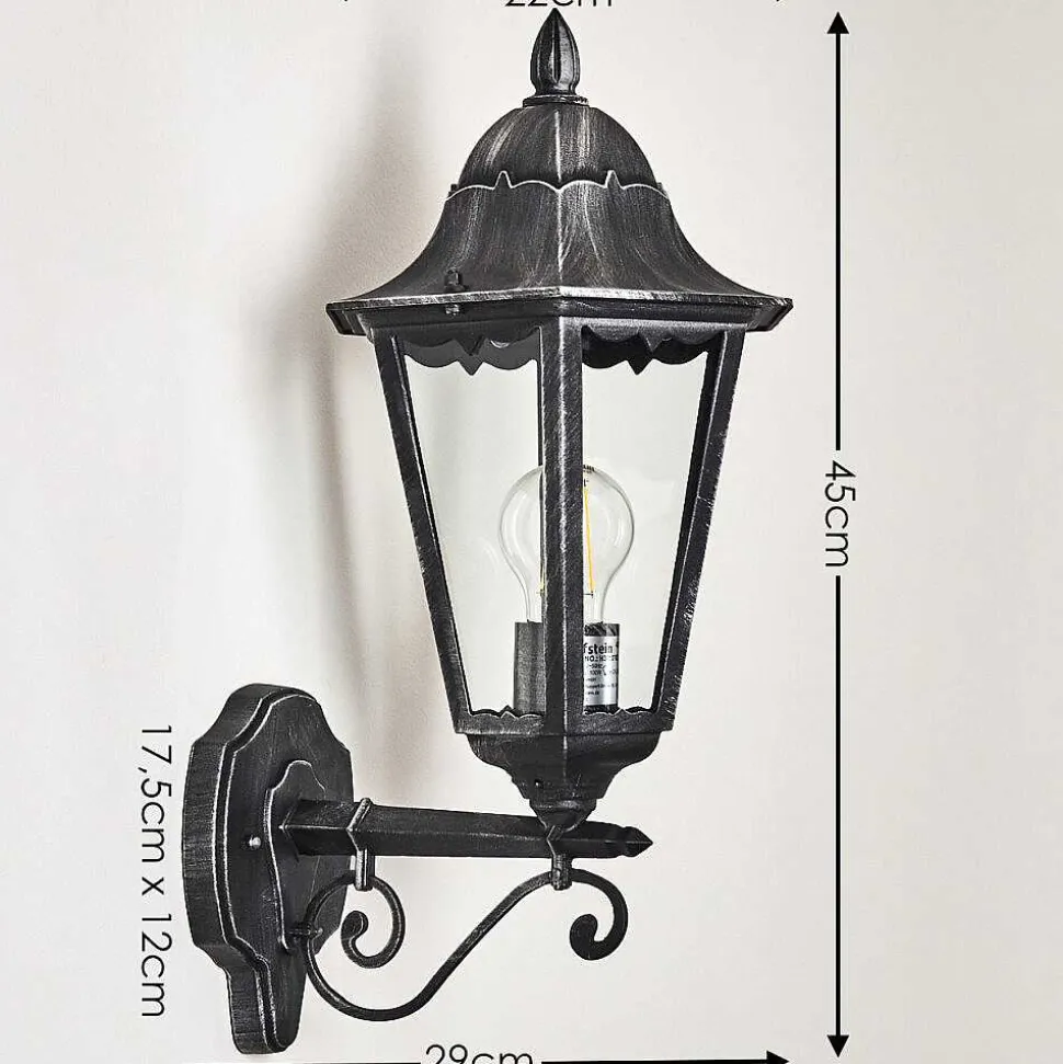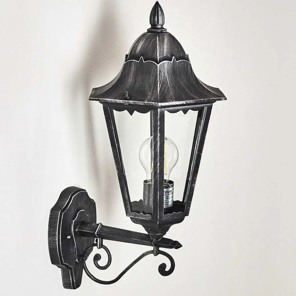 Applique Murale D’Exterieur Lignac Noir, Argente, 1 Lumiere