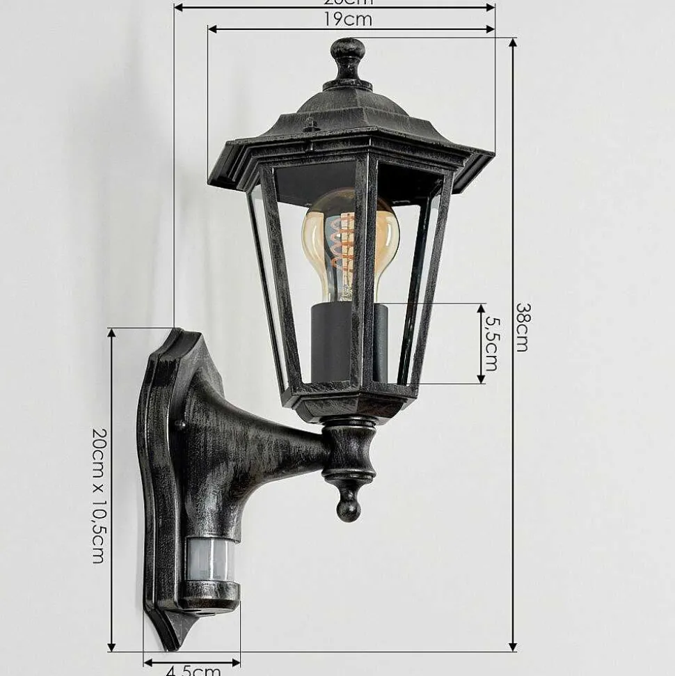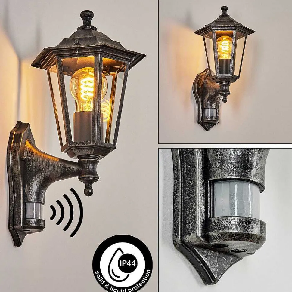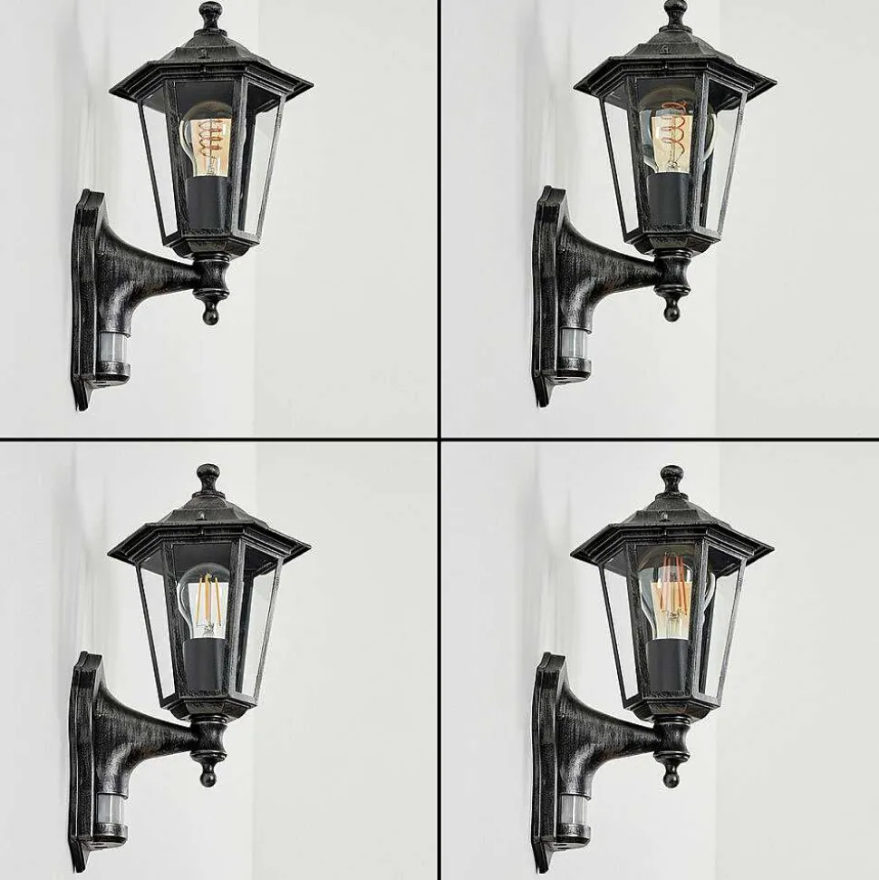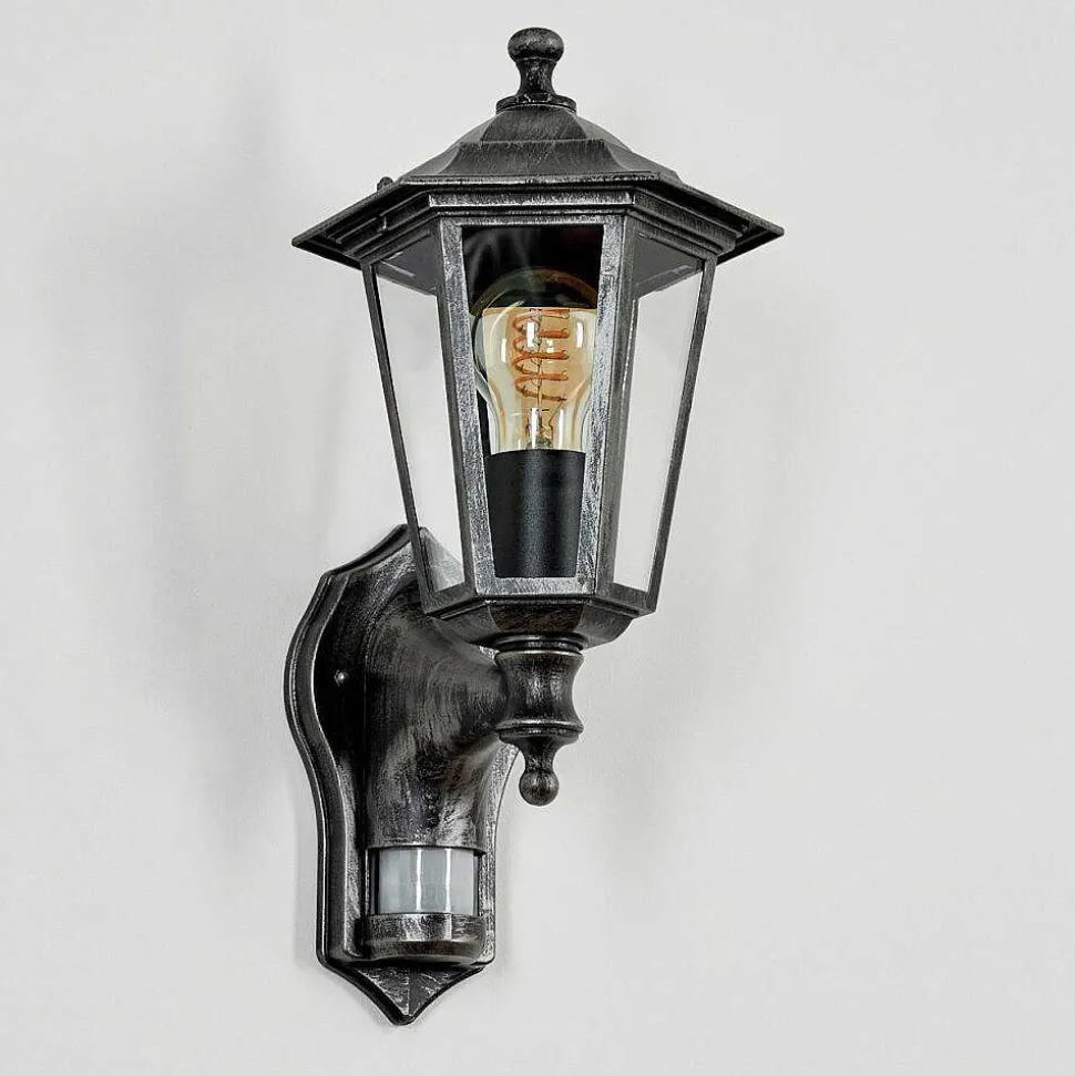Applique Murale D’Exterieur Loria Gris, Noir, Argente, 1 Lumiere, Detecteur De Mouvement