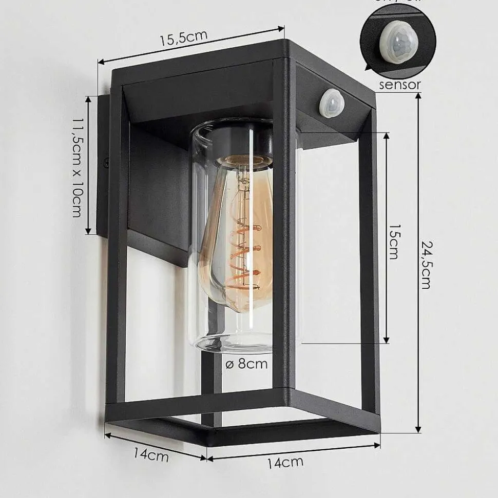 Applique Murale D’Exterieur Palanga Noir, 1 Lumiere, Detecteur De Mouvement