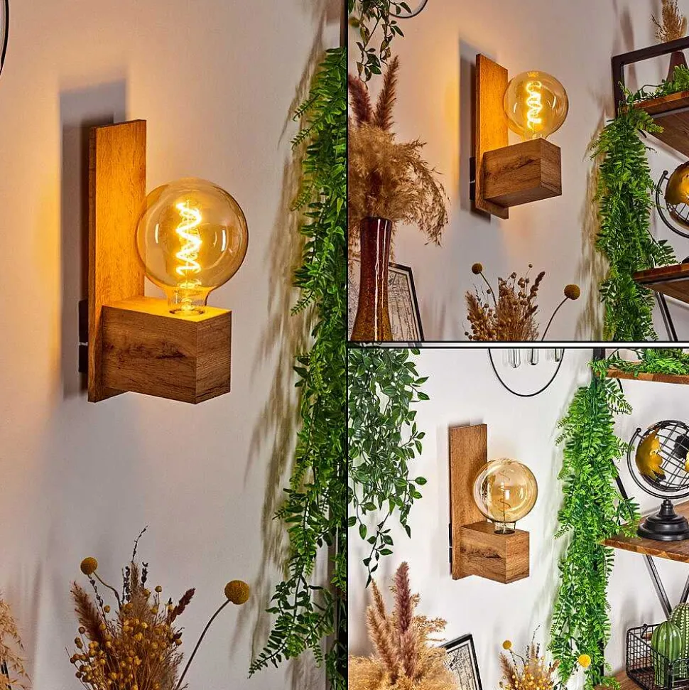 Plafonnier Salmi Led Brun, Couleur Bois, Noir, 1 Lumiere, Telecommandes