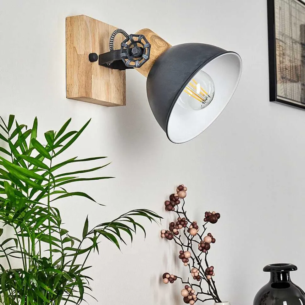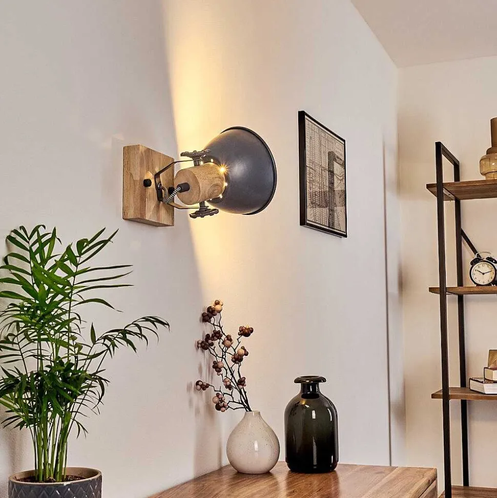Plafonnier Salmi Led Brun, Couleur Bois, Noir, 1 Lumiere, Telecommandes