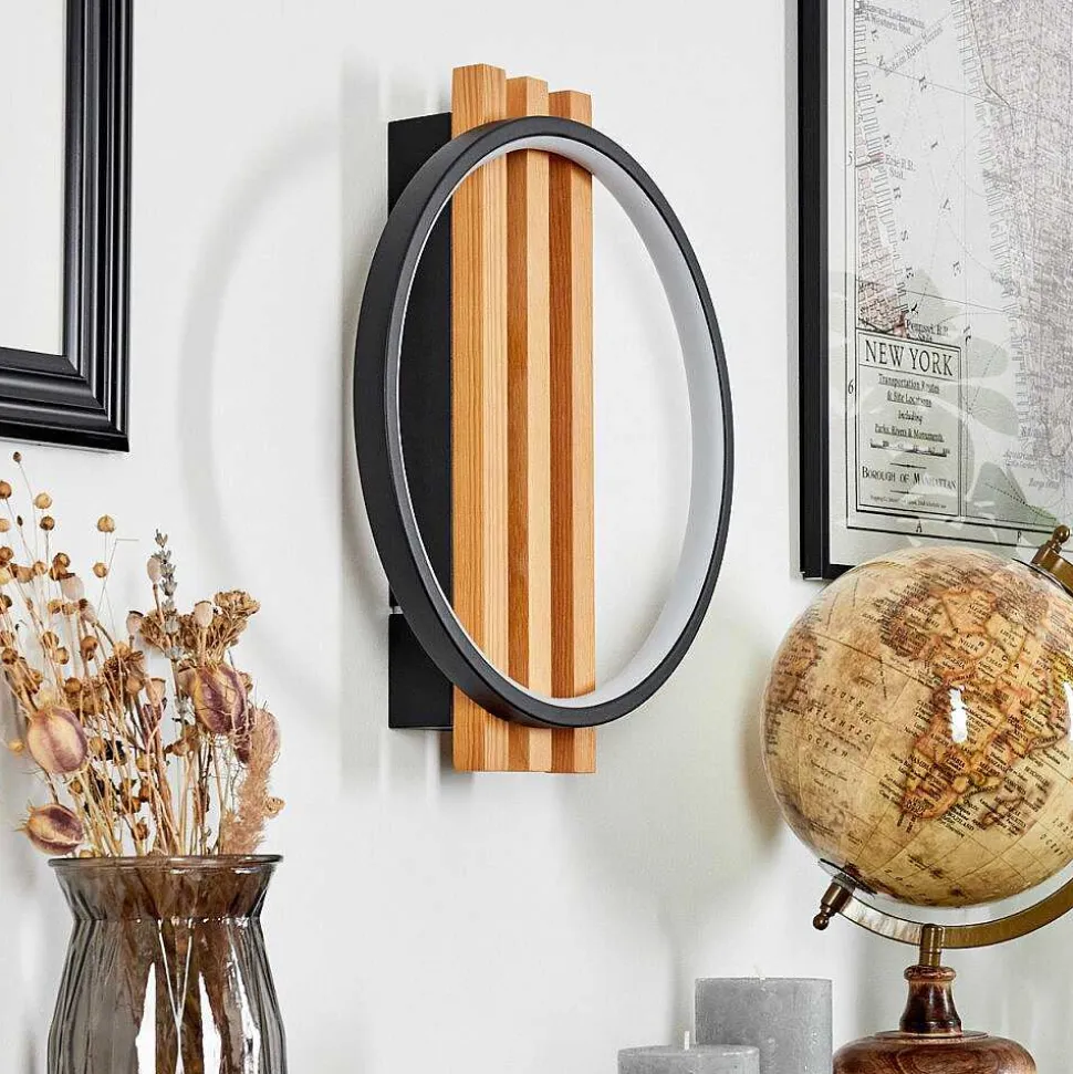 Plafonnier Salmi Led Brun, Couleur Bois, Noir, 1 Lumiere, Telecommandes