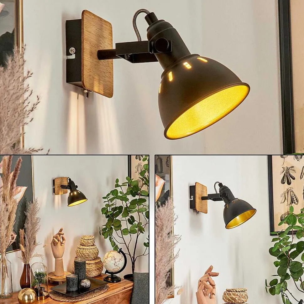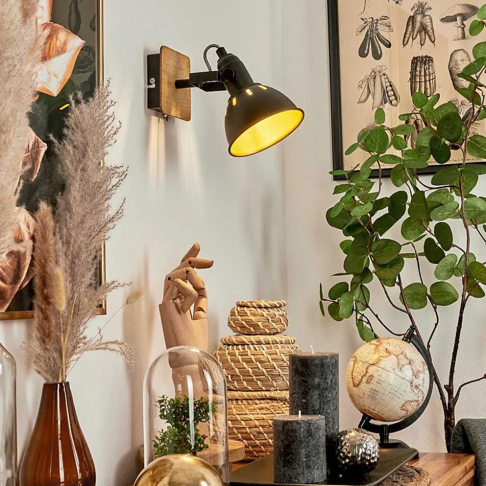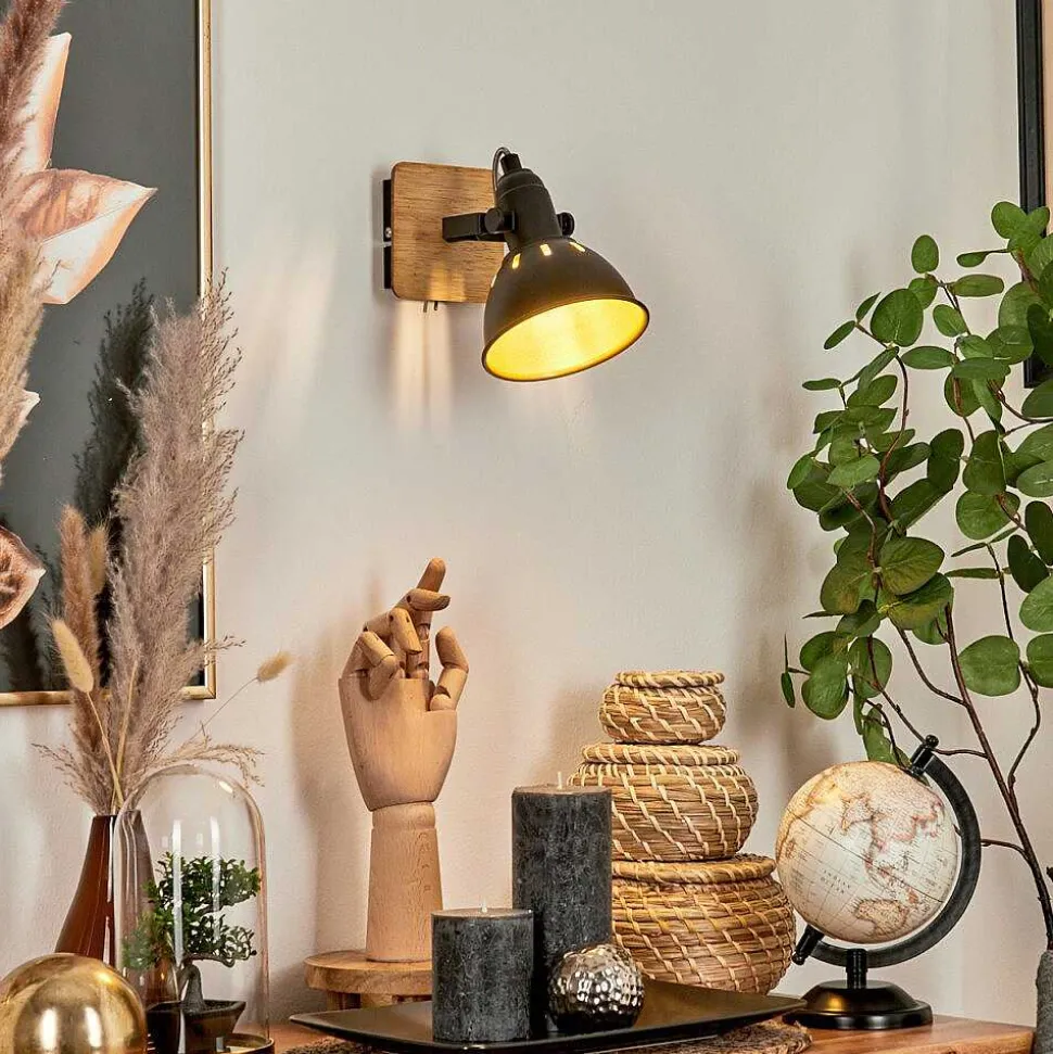 Plafonnier Salmi Led Brun, Couleur Bois, Noir, 1 Lumiere, Telecommandes