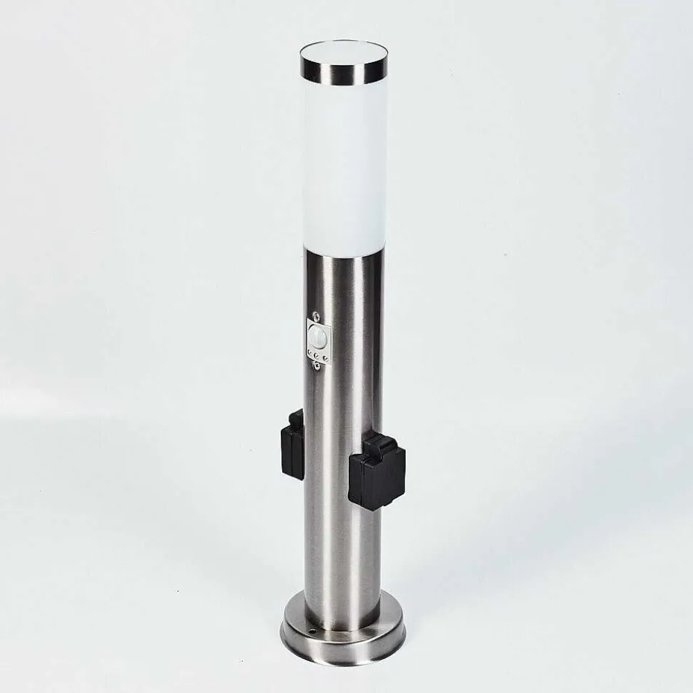 Borne Lumineuse Gaborone Led Nickel Mat, 1 Lumiere, Detecteur De Mouvement