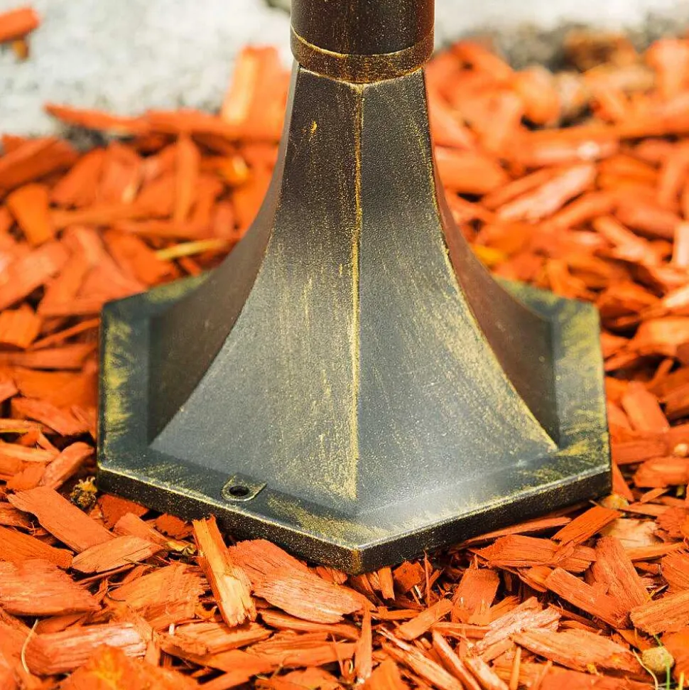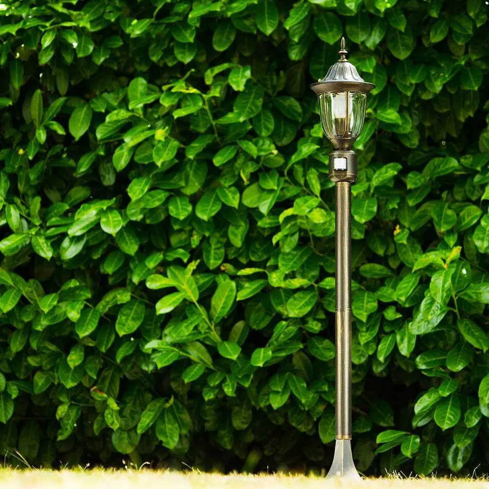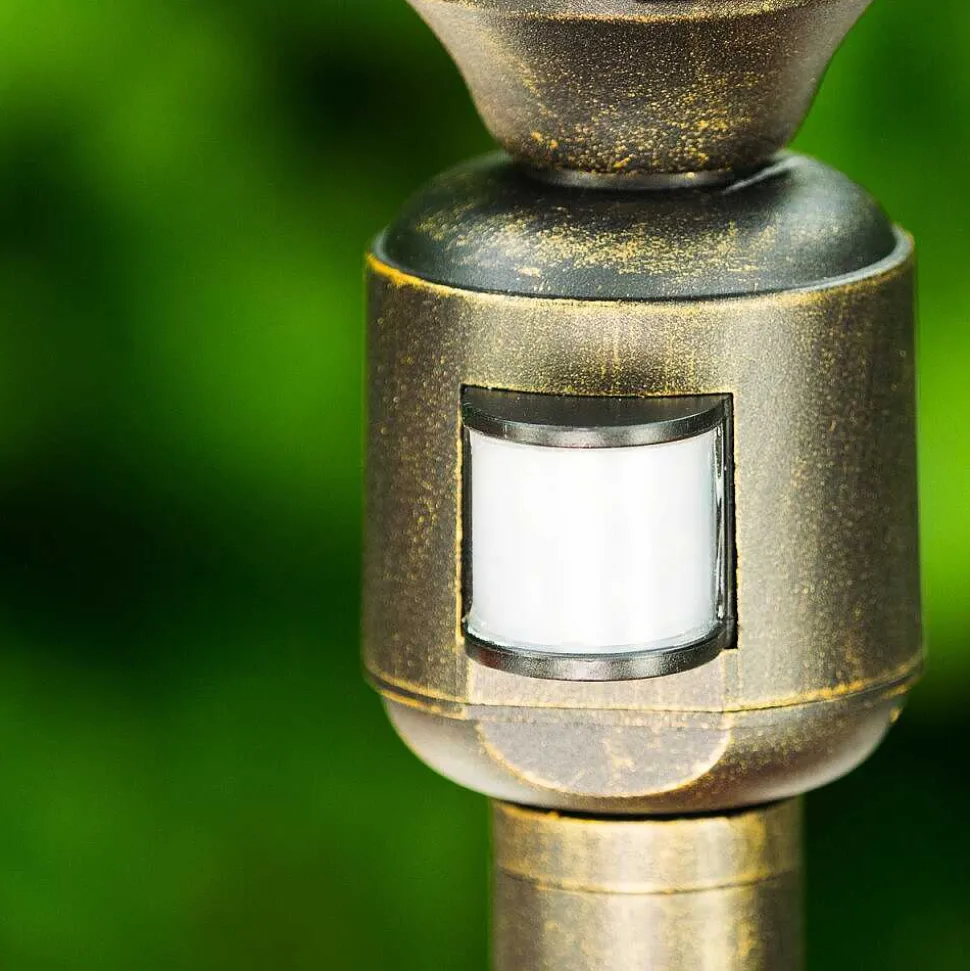 Borne Lumineuse Ribadeo Noir Dore, 1 Lumiere, Detecteur De Mouvement