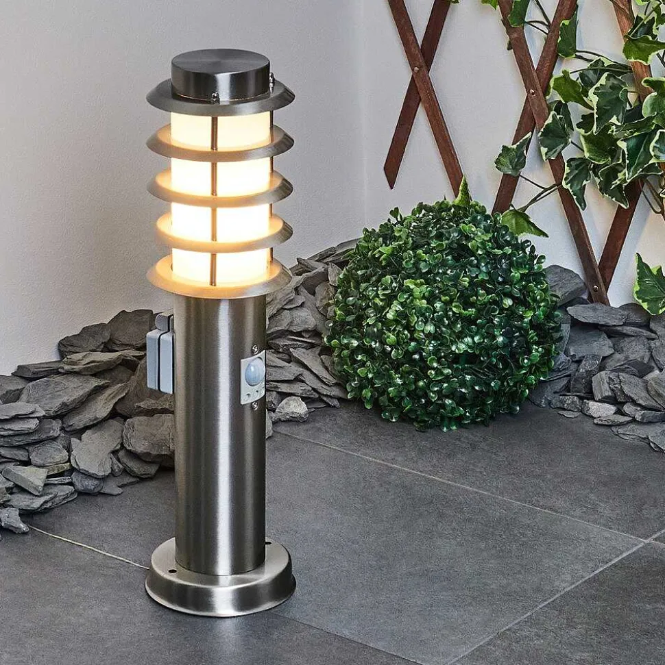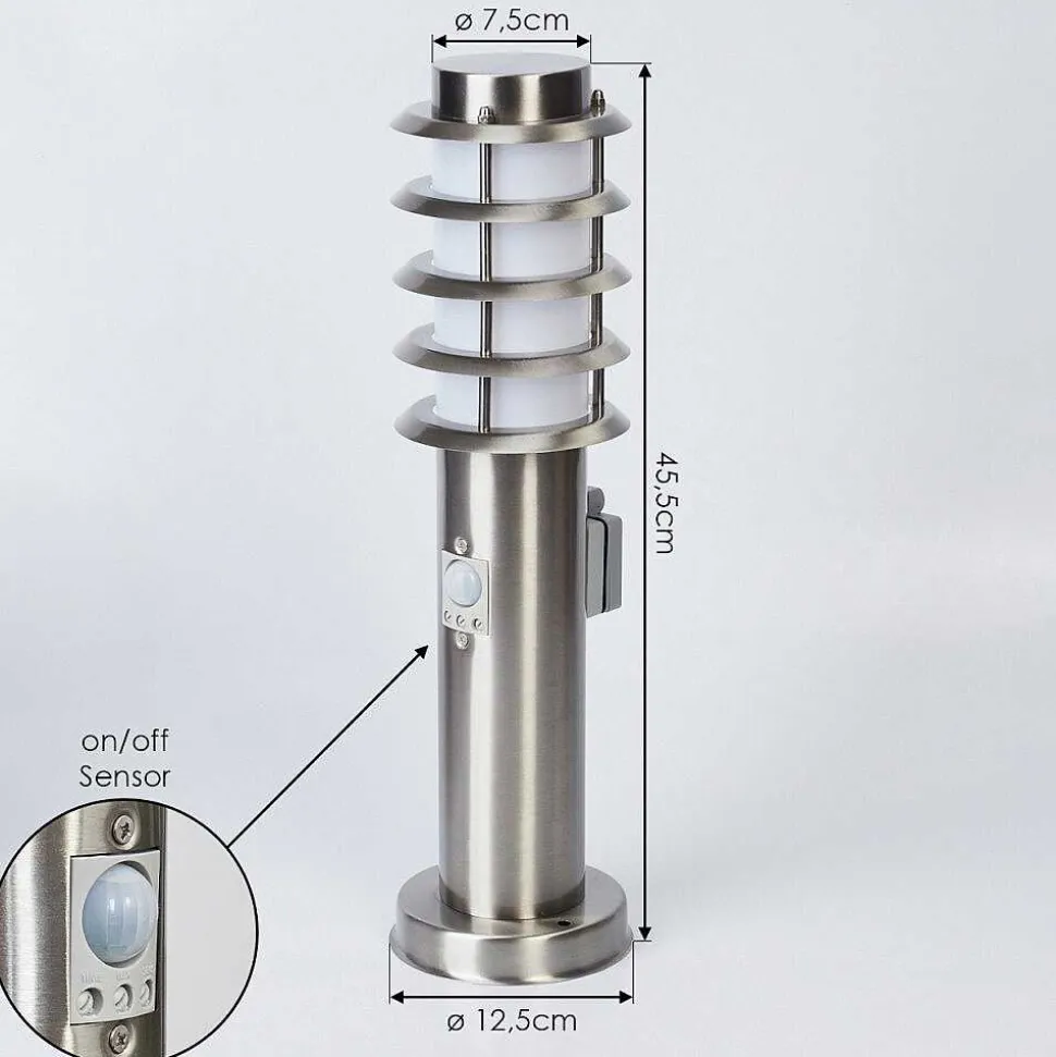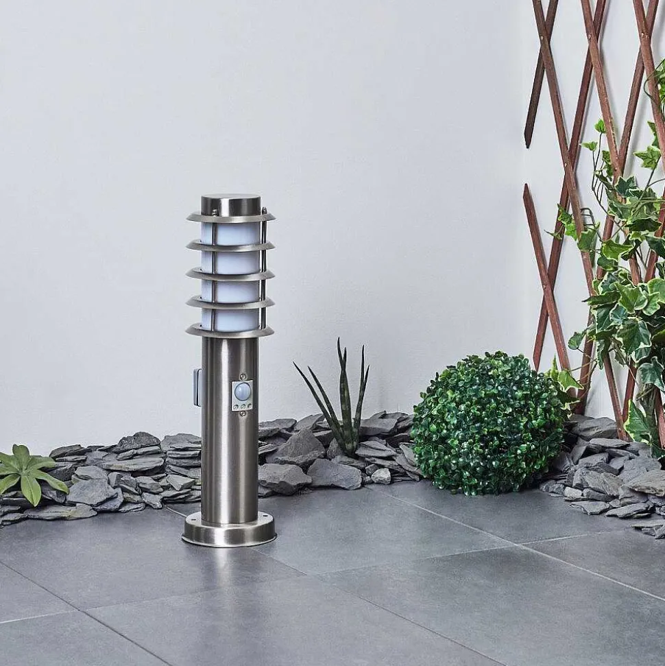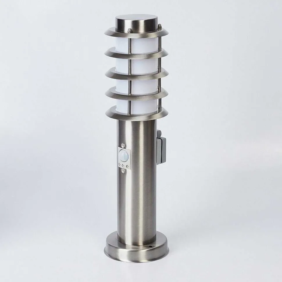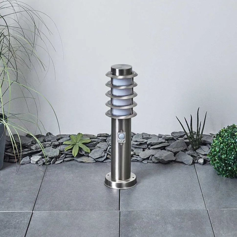 Borne Lumineuse Tunes Nickel Mat, 1 Lumiere, Detecteur De Mouvement