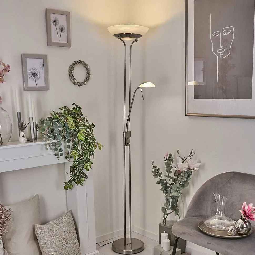 Lampadaire Biot Led Nickel Mat, 2 Lumieres